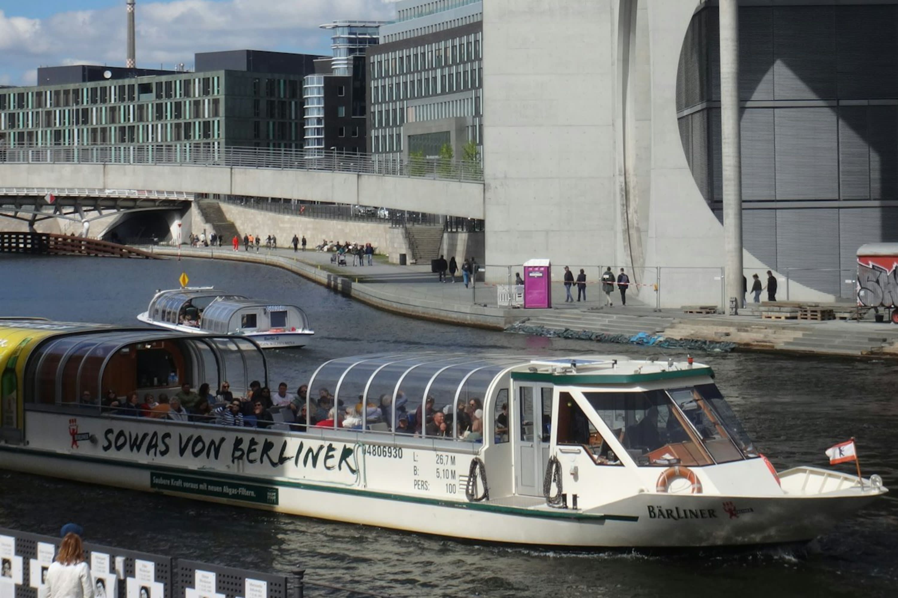 * 슈프레 강을 따라 와인이나 커피를 마시며 베를린의 상징적인 랜드마크를 한 시간 만에 둘러보세요.
