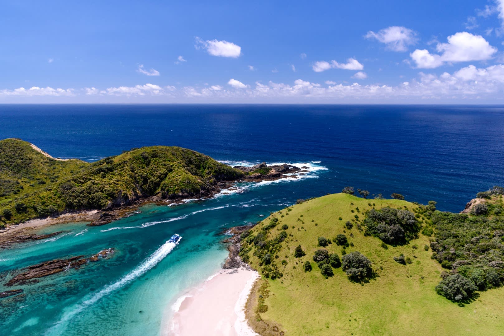 * 하얀 모래 해변을 따라 산책하거나 언덕 꼭대기까지 걸어가 베이 오브 아일랜드 전체의 아름다운 경치를 감상하세요.