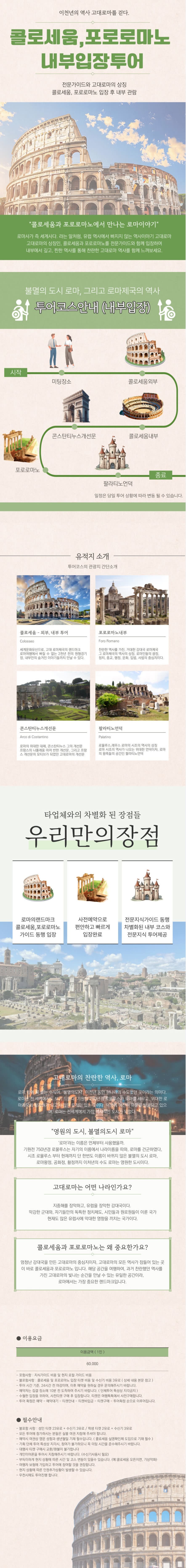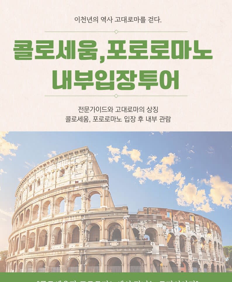 💙 콜로세움 내부입장 투어 안내 유네스코 세계문화유산인 콜로세움과 포로 로마노를 현지 전문 가이드와 함께 탐방하는 투어입니다. 웅장한 고대 로마의 역사를 생생하게 느껴보세요!