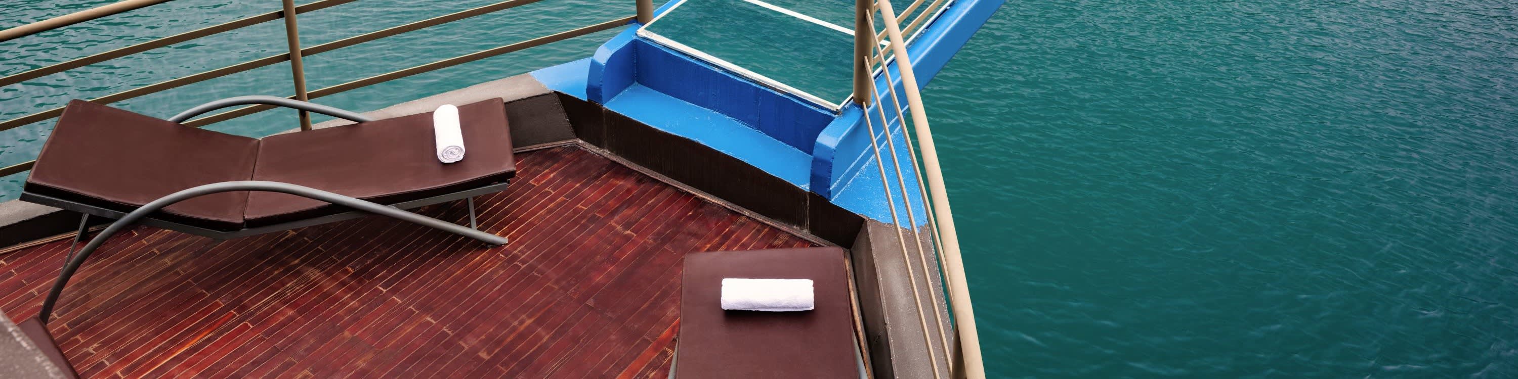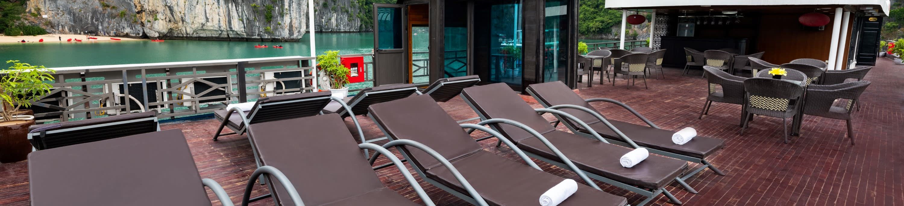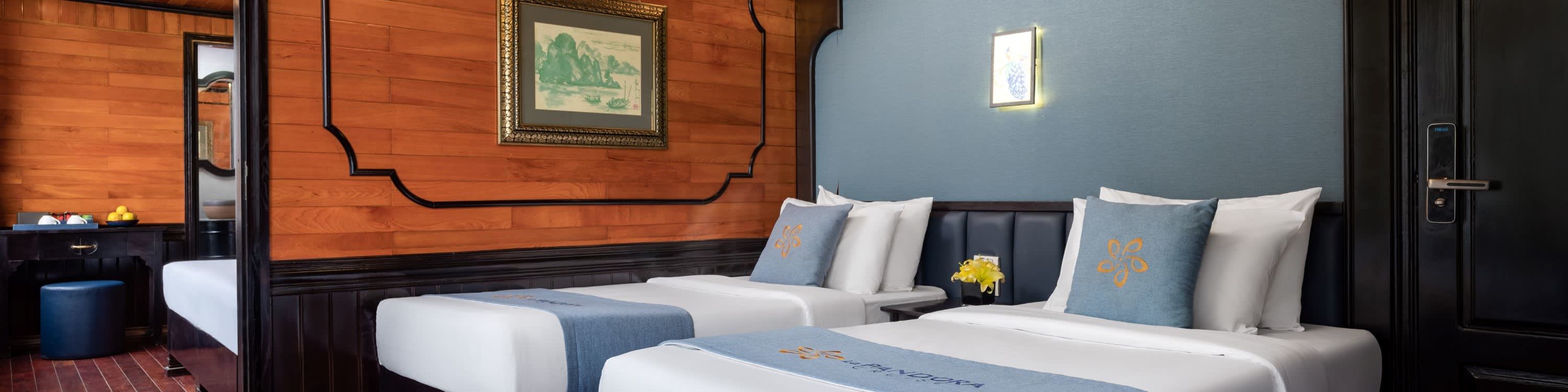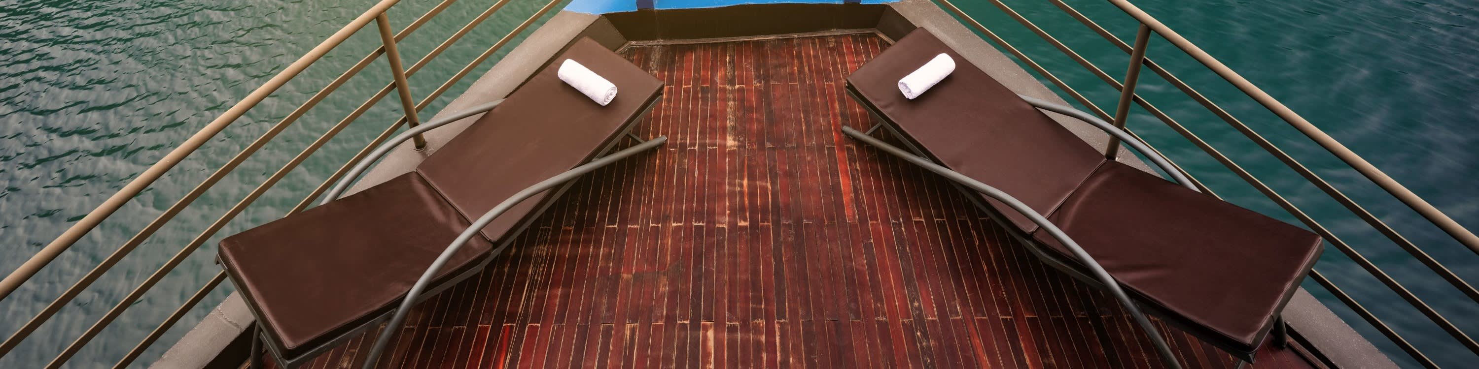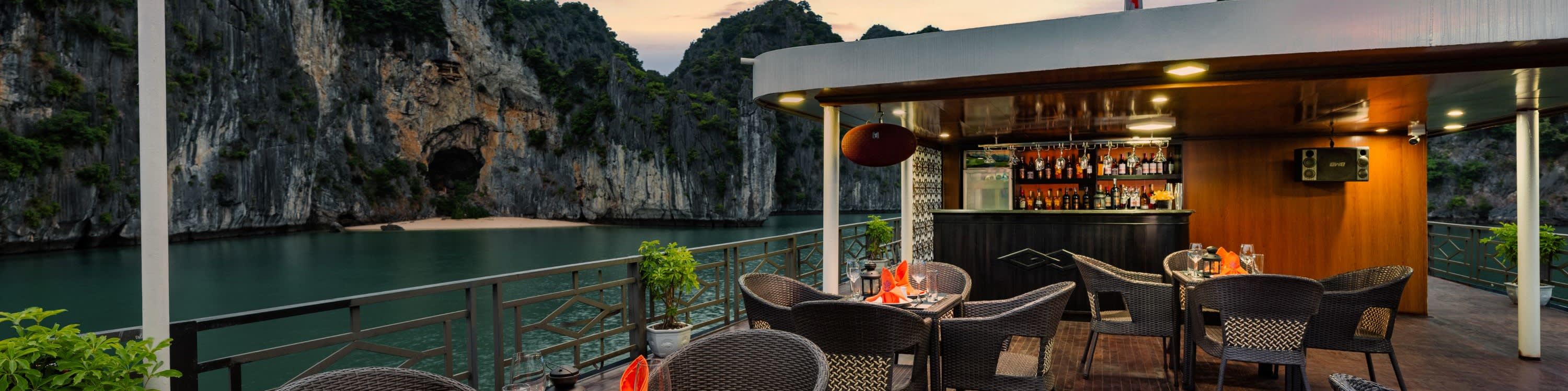 라 판도라 부티크 크루즈 동양적인 스타일의 현대적인 디자인으로 새롭게 단장한 라 판도라 부티크 크루즈는 철과 나무의 조화로운 조합으로 안전함과 아늑하고 고급스러운 분위기를 선사하는 특별한 선물입니다. 길이는 40m, 폭은 8.5m이며 4개의 데크에 걸쳐 있습니다. 12개의 전용 욕실을 갖춘 완비된 객실, 스카이 바, 우아한 식사 공간, 넓은 일광욕 데크, 그리고 개인 서비스의 모든 세부 사항에 헌신하는 엘리트 전문 승무원 팀이 현대적인 아름다움과 편안함이 조화를 이루어 라 판도라 부티크와 함께하는 크루즈를 진정으로 독특하고 잊을 수 없는 경험으로 만들어 줄 것입니다.
