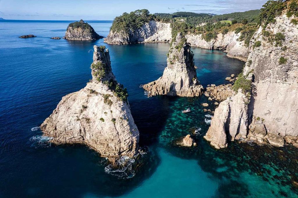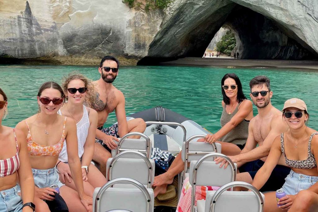• 휘티앙가에서 캐피털 코브로 향하는 크루즈를 타고 다른 배로는 접근할 수 없는 지역을 탐험하세요. 숨겨진 만을 발견하고 동굴 내부를 탐험하며 스노클링과 암벽 점프(옵션)에 참여하세요.