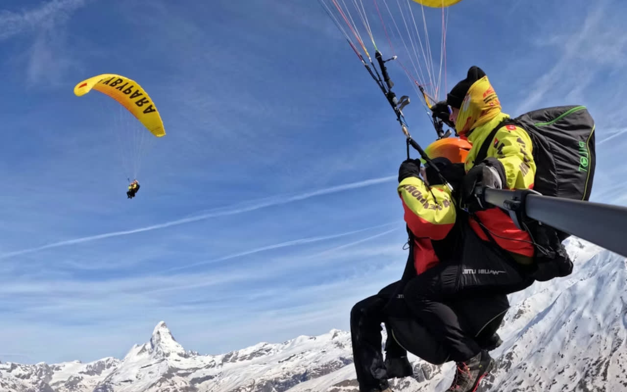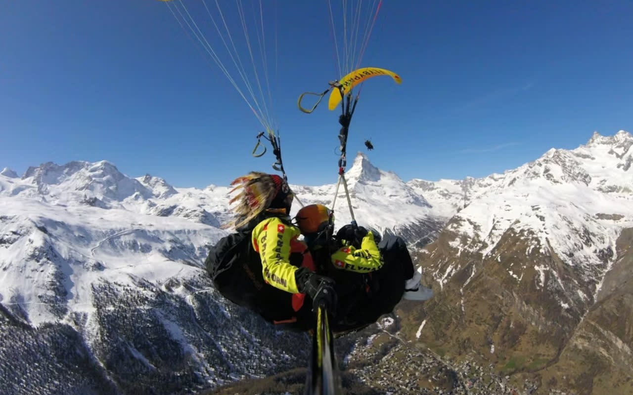 * 스위스, 이탈리아, 프랑스의 눈 덮인 알프스 위로 펼쳐지는 숨 막히는 경치를 즐겨보세요. 그림 같은 체르마트의 맑은 하늘에서 열기를 느끼고 아드레날린을 경험하세요. 상징적인 마테호른 바로 앞에서 스릴 넘치는 탠덤 패러글라이딩 비행을 경험하세요. 전문 파일럿과 함께 체르마트의 웅장한 산을 통해 평화롭게 활공하세요.