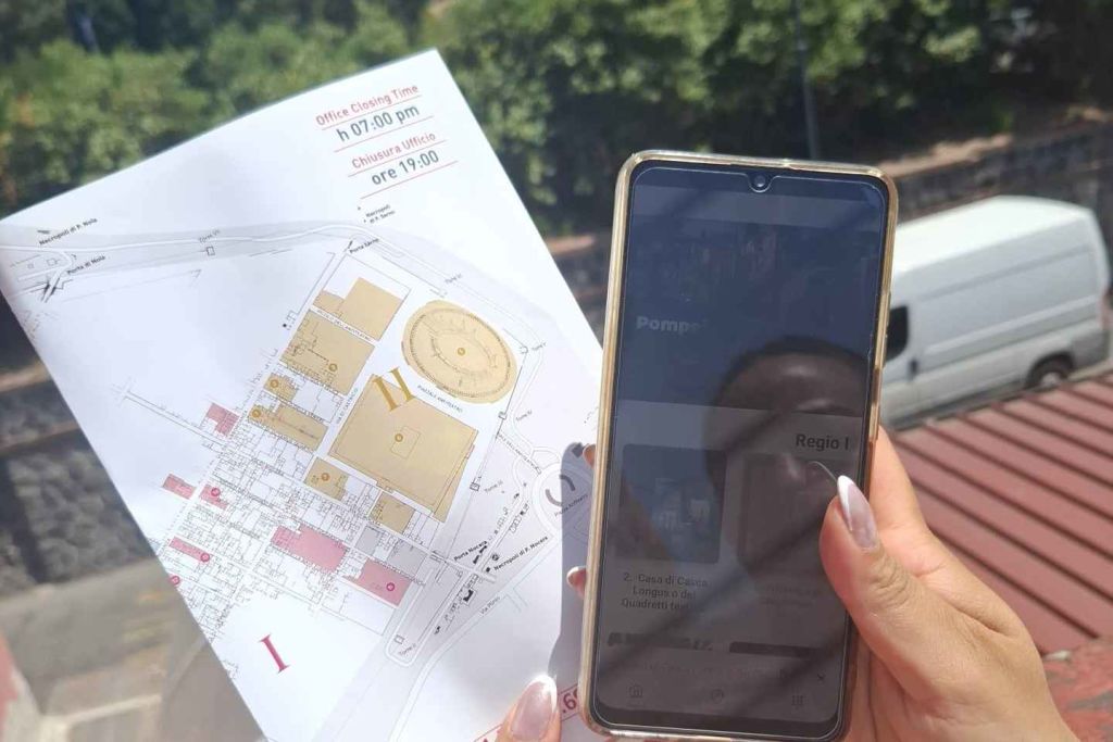 온라인 구매 후, Villa dei Misteri 거리 1번지에 있는 EAV 역 'Pompei Scavi – Villa dei Misteri' 1층에 위치한 사무소에서 전체 Artecard 티켓과 오디오 가이드를 수령하세요. 그곳에서 포르타 마리나 인페리오레(Porta Marina Inferiore) 입장구(에세드라 광장, Piazza Esedra)까지 단 몇 분 만에 도착하여 다른 입장구에서 표준 대기열을 우회하는 전용 오시는 길을 즐기세요. 이 패키지에는 유용한 지도와 다국어 지원도 포함되어 있어 체계적이고 즐거운 방문을 보장합니다.