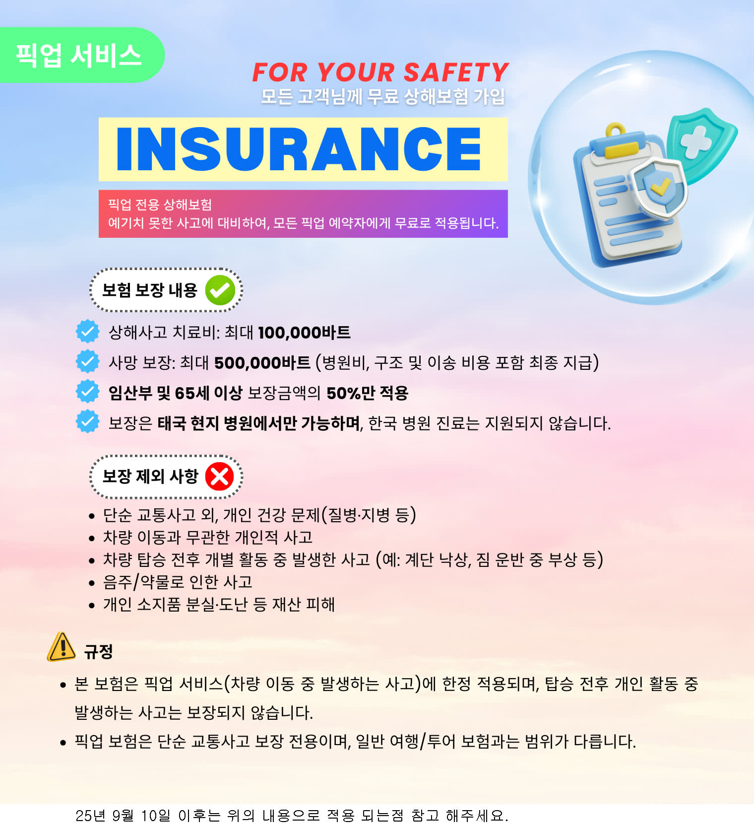 상해보험 무료 가입, 편안한 이동, 빠른 예약 상담!