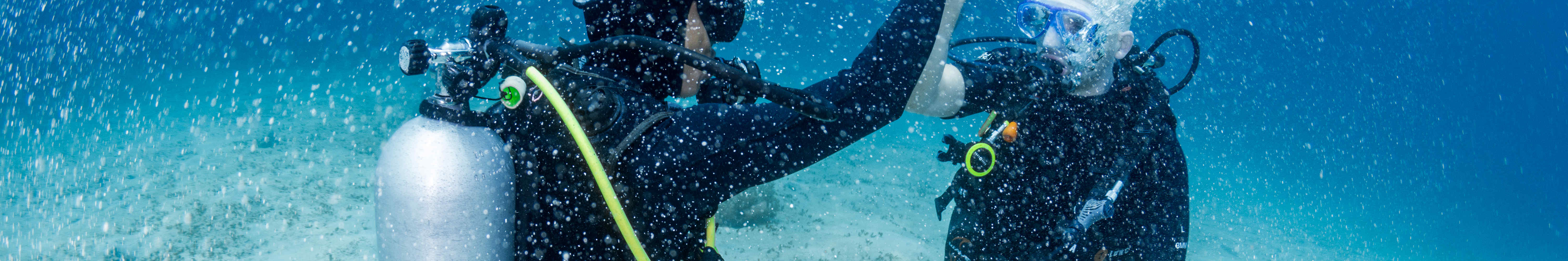 PADI 전문가의 감독 하에 기본적인 안전 지침과 다이빙 기술을 배워보세요. 개방 수역 다이빙 전에 얕은 물에서 다음 기술을 연습합니다. 1) 스쿠버 장비에 익숙해지기. 2) 수중 호흡 경험하기. 3) 주요 다이빙 기술 배우기. 4) 즐겁게 탐험하기. 5) PADI 오픈 워터 다이버 자격증 취득 방법 알아보기.