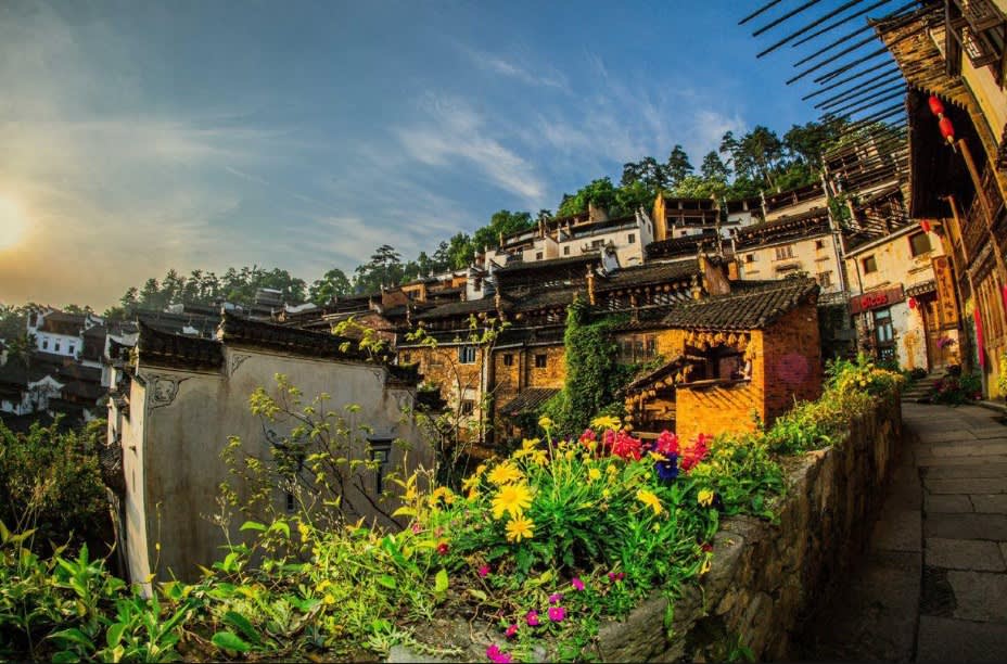 * [황링 고대 마을] 절벽에 매달려 있는 황링 고대 마을은 "가을 햇살"이라는 민속 풍습, 계단식 논, 꽃 바다, 오두막 마을, 고대 혜주 건물을 즐기고 있습니다.
