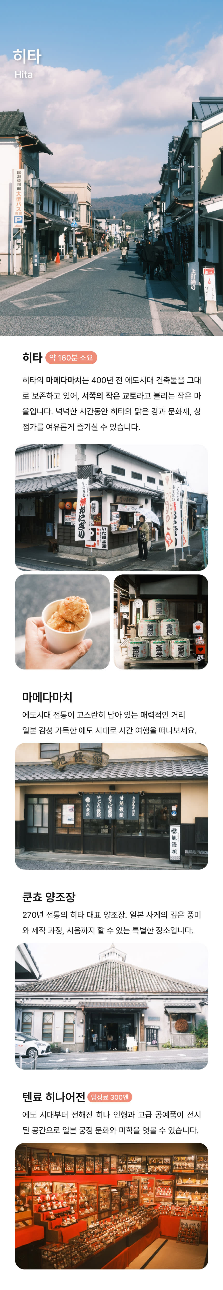 맑은 강과 에도시대 감성 가득한 히타, 당일 입욕 가능한 쿠로카와 온천마을까지