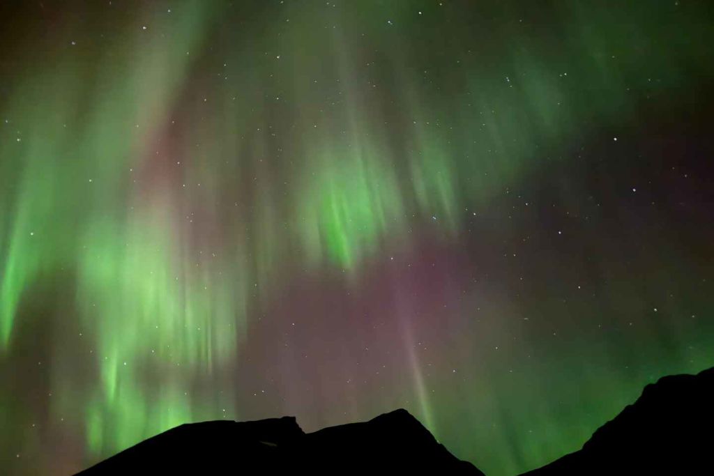 가장 일반적인 색은 낮은 고도에서 산소에 의해 발생하는 녹색이며, 높은 고도에서는 빨간색이 나타납니다. 질소는 푸른색 또는 자줏빛을 띠는 빛의 원인이 됩니다. 오로라를 목격하려면 맑은 하늘, 어둠, KP 지수의 활동 등 세 가지 핵심 요소가 일치해야 합니다.