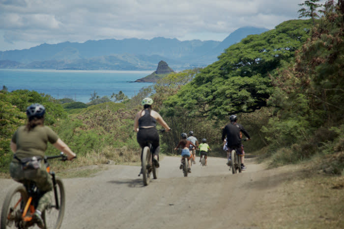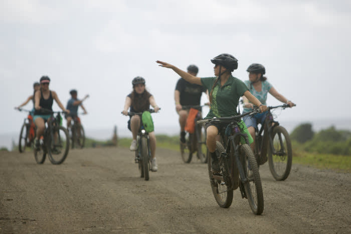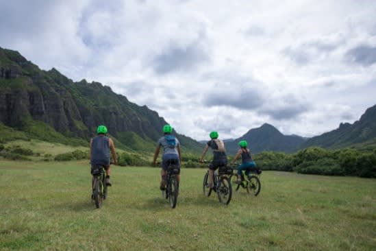 쿠알로아 랜치에서는 울트라 투어와 노비스 투어, 두 가지 e-바이크 투어 중에서 선택할 수 있으며, 두 투어 모두 아름다운 쿠알로아 및 카아아와 계곡을 통과합니다. 길을 따라 사진을 찍고 멋진 경치를 감상할 수 있는 정류장이 4~5군데 있습니다. 출발 전, 자전거를 사용자에 맞게 조정한 다음 안전 점검과 간단한 연습 라이딩을 진행합니다.
