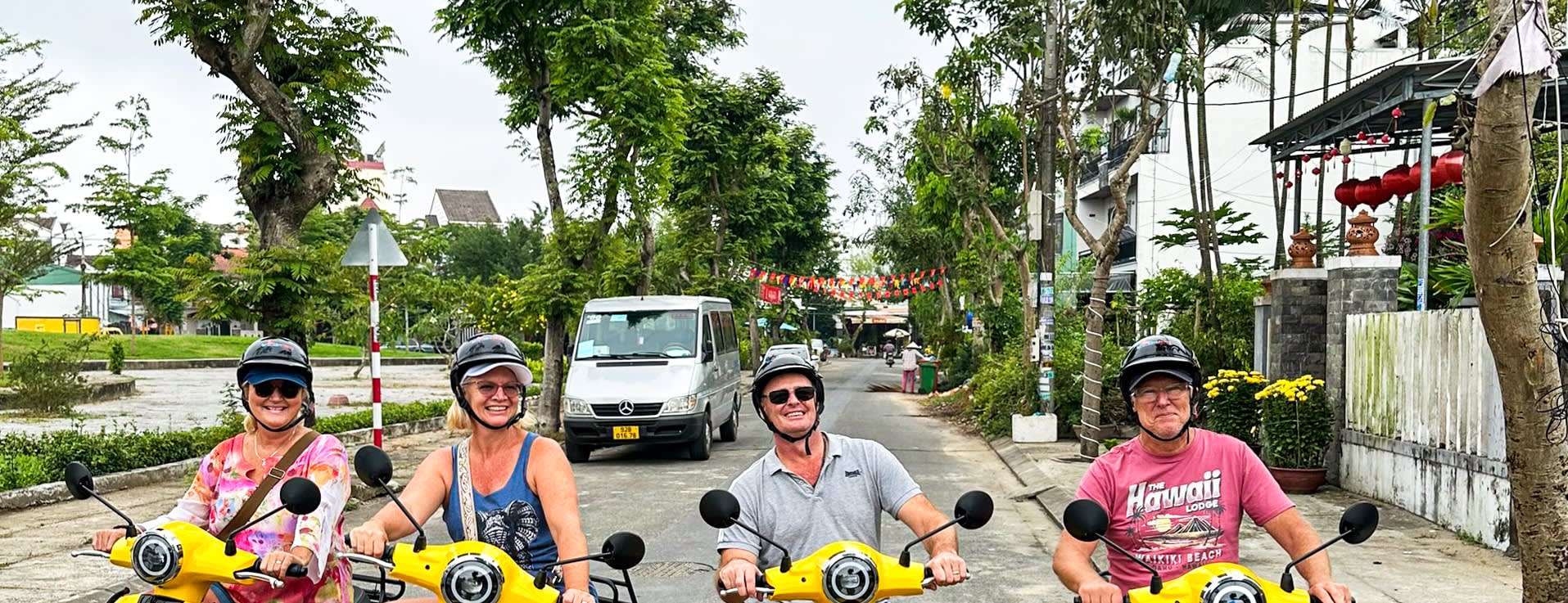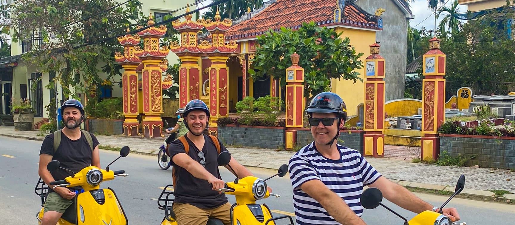 호텔에서 가이드와 만나 전동차를 타고 출발 지점으로 이동하여 전동 스쿠터 타는 법을 배웁니다. 숨겨진 매력이 가득한 깜남 빌리지에서 모험이 시작됩니다. 먼저, 어선 유지 보수를 위한 노고를 엿볼 수 있는 조선소를 방문합니다. 다음으로, 가족 예배당에 들러 베트남의 전통 신앙에 대해 알아봅니다.