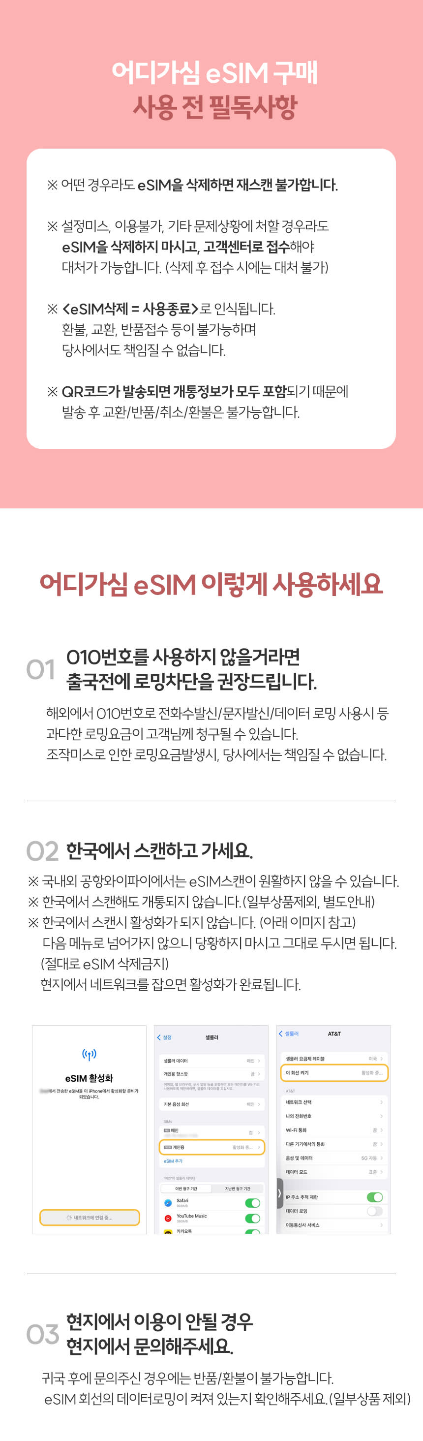 ※ 주의!! 한국에서 스캔 시 바로 개통됩니다.