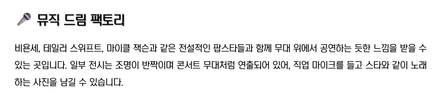 • 📷 생생한 포즈로 인생샷 남기고, 직접 무대의 주인공이 되어보세요.