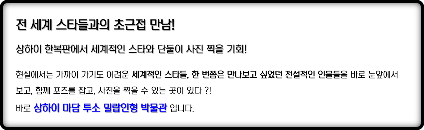• 📸 상하이 마담 투소 – 스타와의 만남, 지금 여기서! 🌟