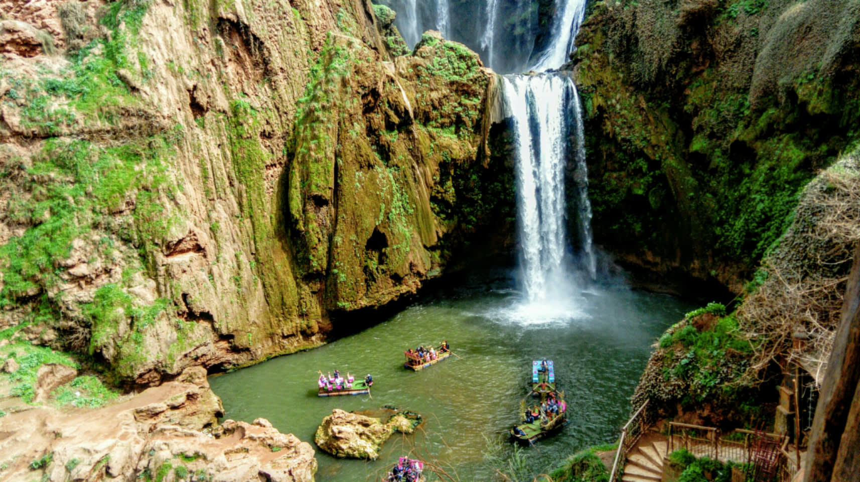 우주드 폭포로 여행하는 동안 전문 현지 가이드가 통찰력 있는 해설을 제공하고 이 지역의 풍부한 역사와 문화적 중요성을 공유합니다. 도착하면 무성하고 푸른 풍경을 가로질러 110m 아래로 떨어지는 모로코에서 가장 높은 폭포의 숨 막힐 듯한 광경에 매료될 준비를 하세요.