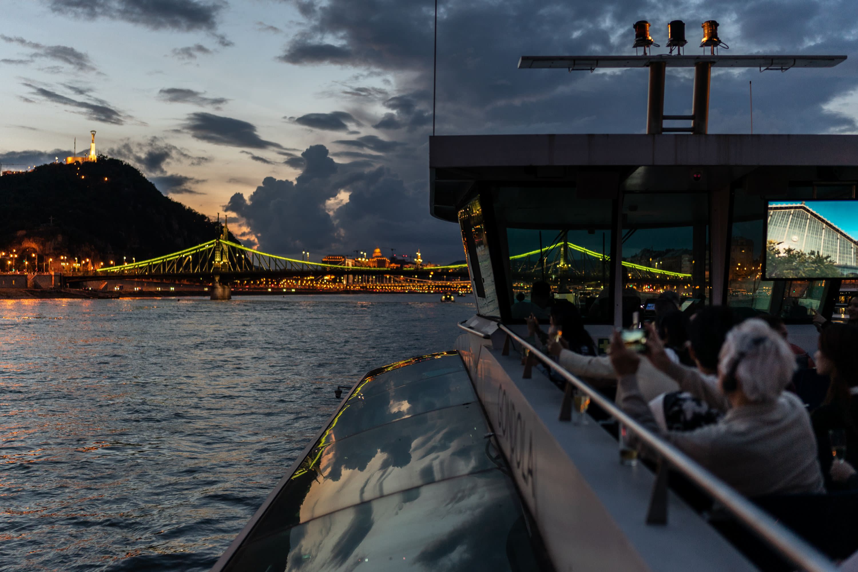 * 강에서 빛나는 부다페스트 스카이라인의 매혹적인 풍경을 즐기며 원하는 음료를 즐겨보세요.