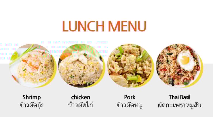*볶음밥은 4가지 종류이며, 가격은 메뉴별 50~100바트 입니다.