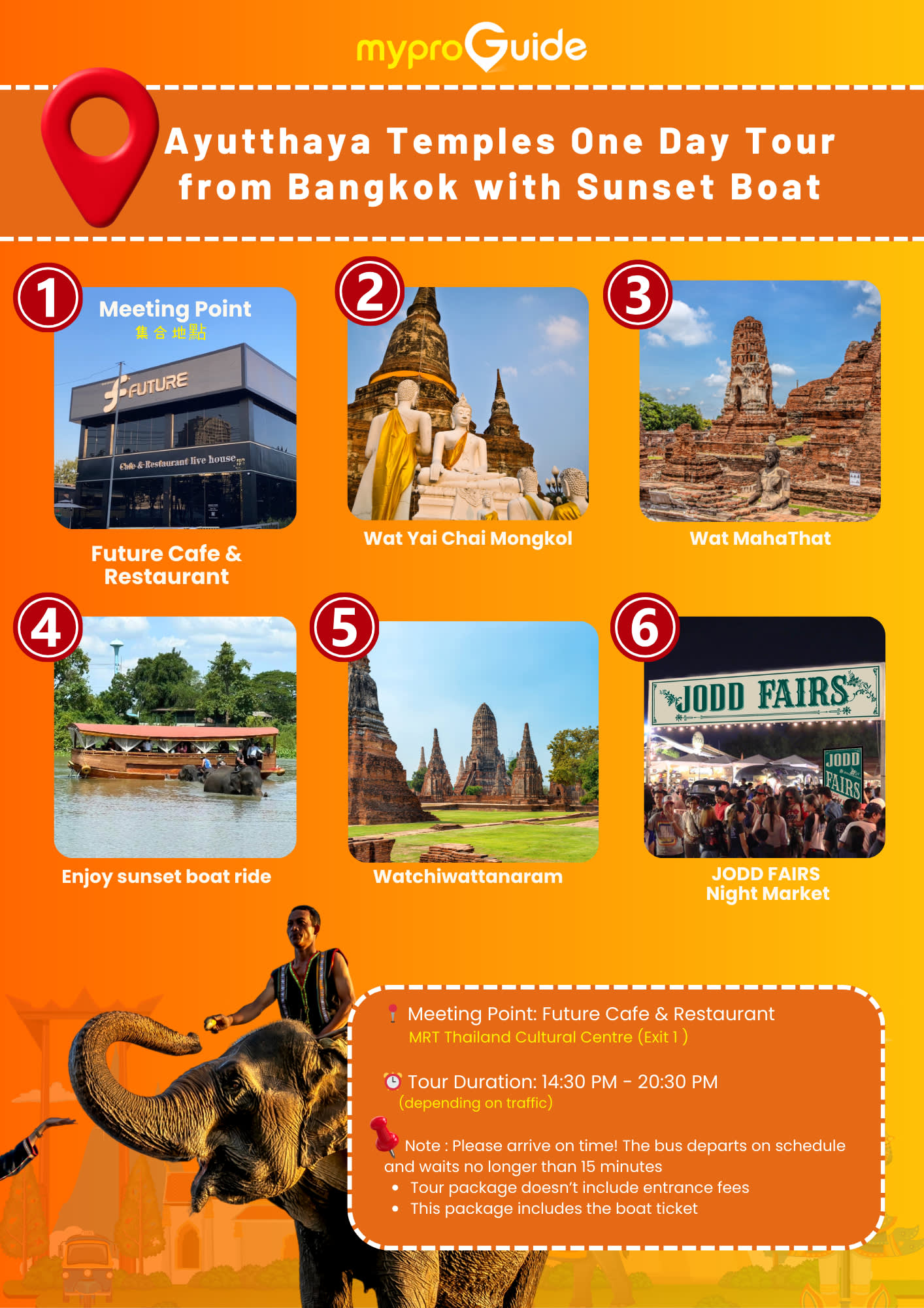 * 방콕으로 돌아가기 전, 보트를 타고 석양을 감상하세요.