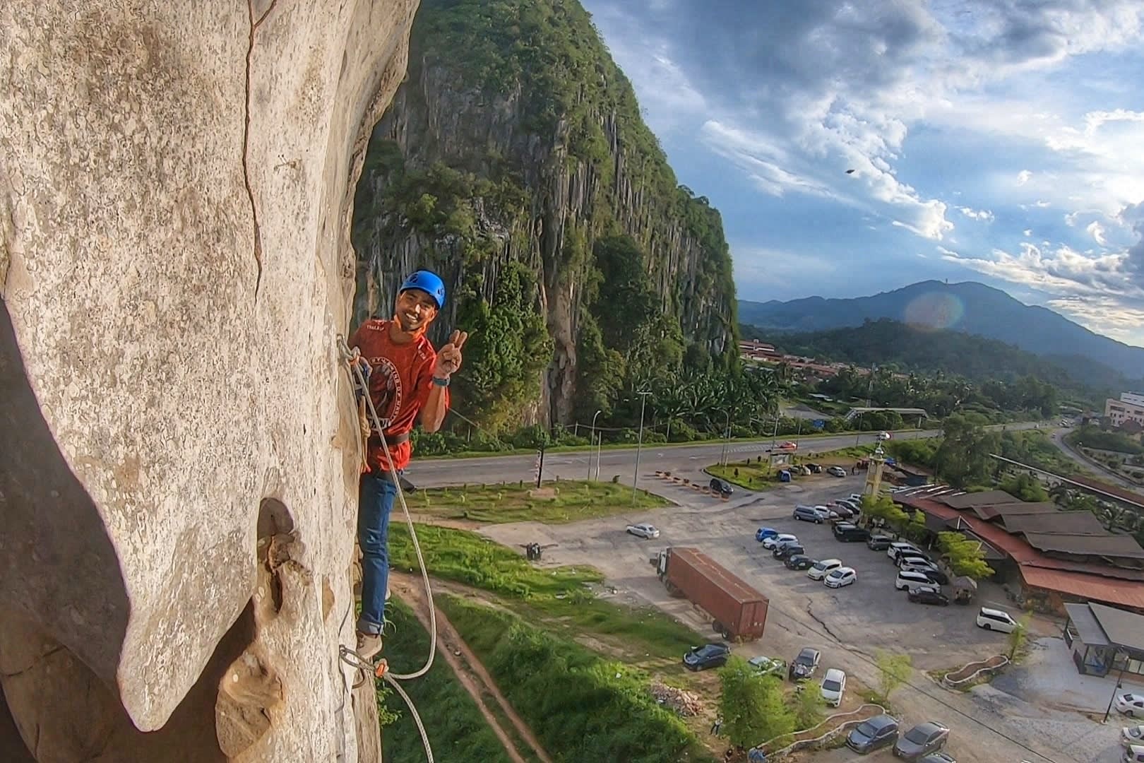 * 꽌무상 석회암 언덕의 암벽을 따라 층계, 난간, 케이블에 의지하여 올라가 보세요.
