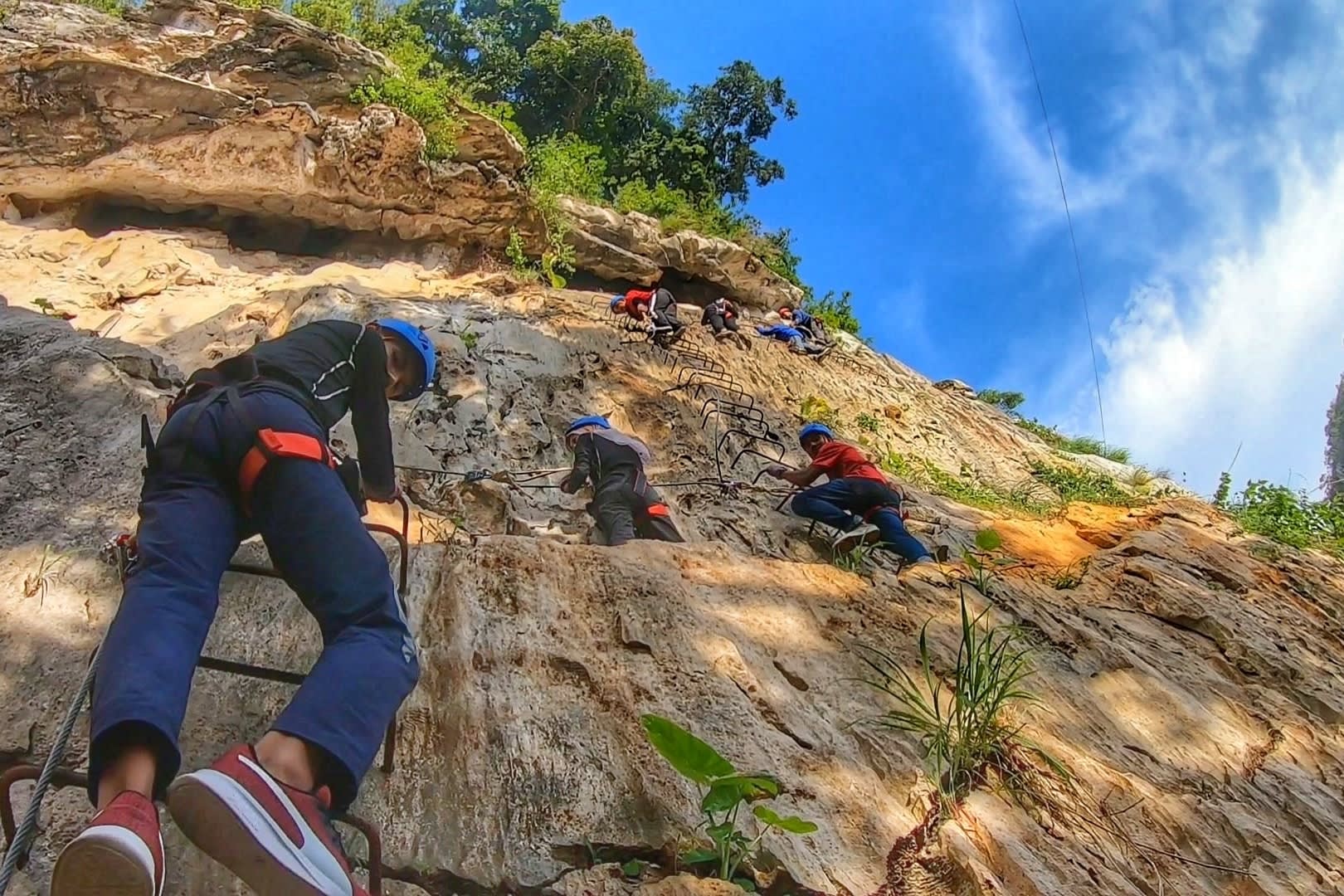 * 비아 페라타에서 1시간 동안 하이킹을 하고 플라잉 폭스 레일을 타고 내려오세요.
