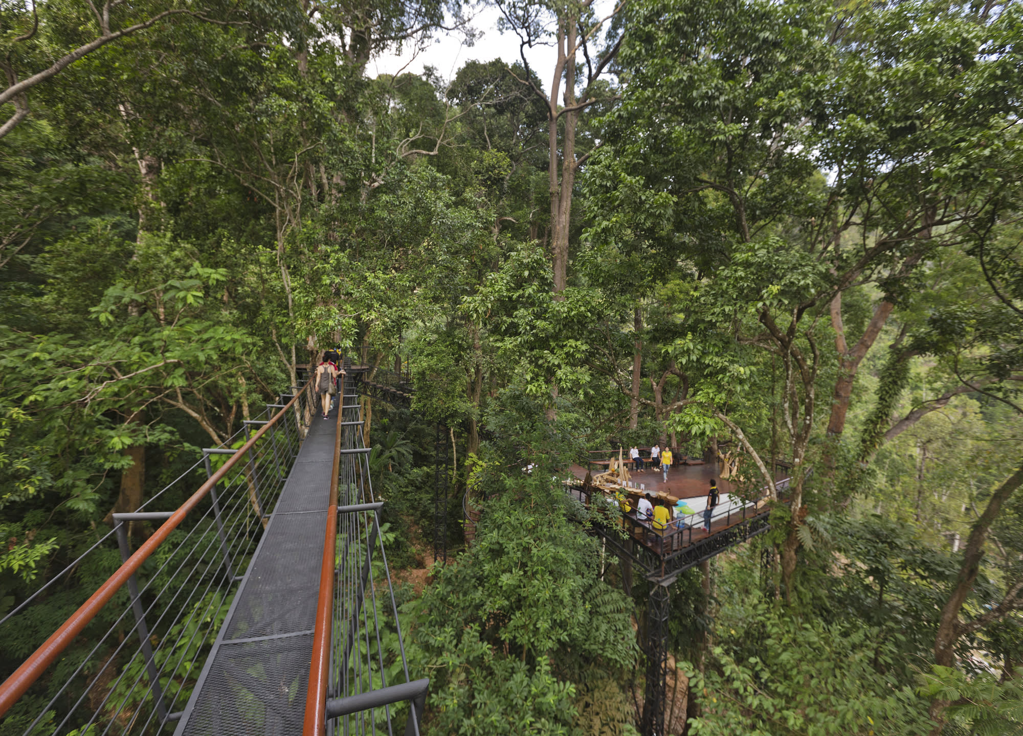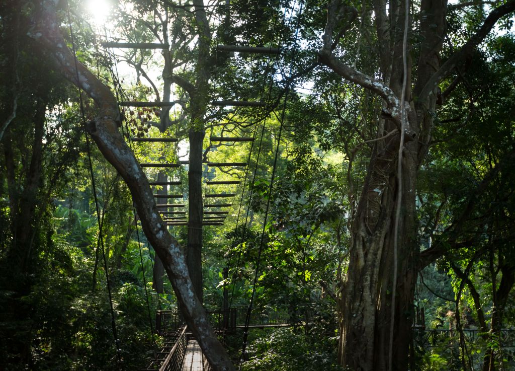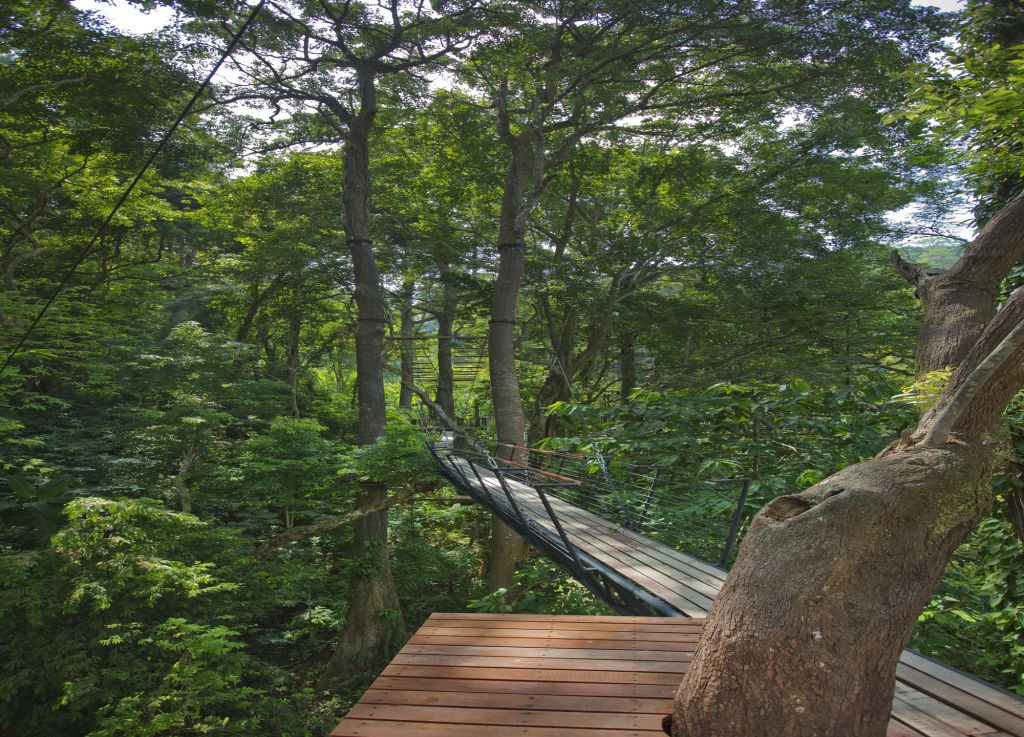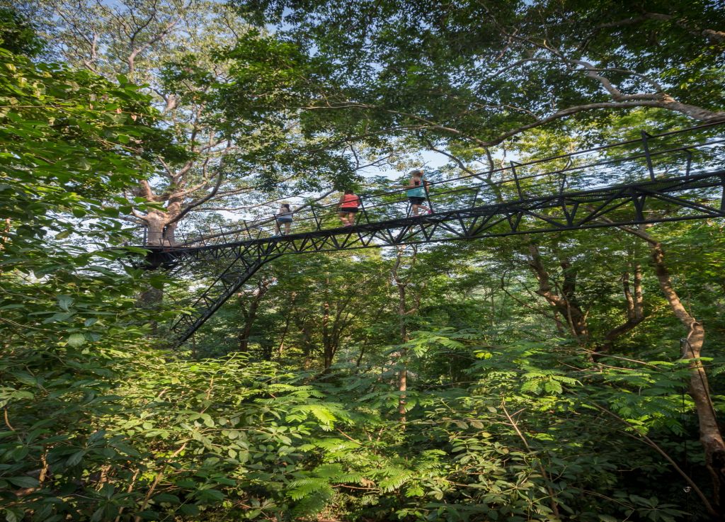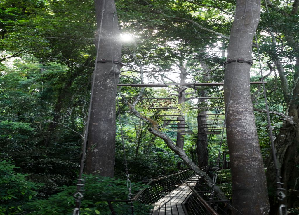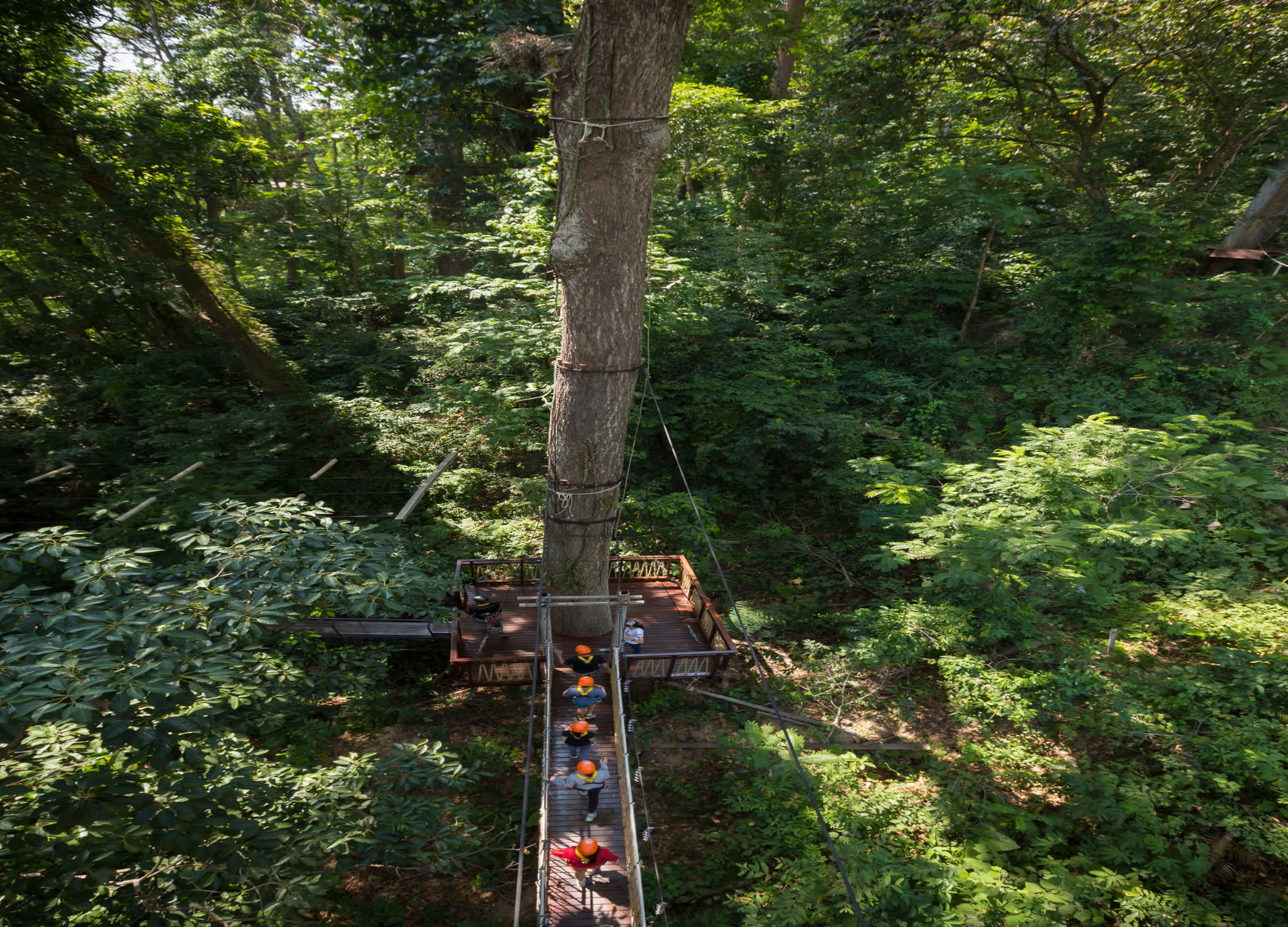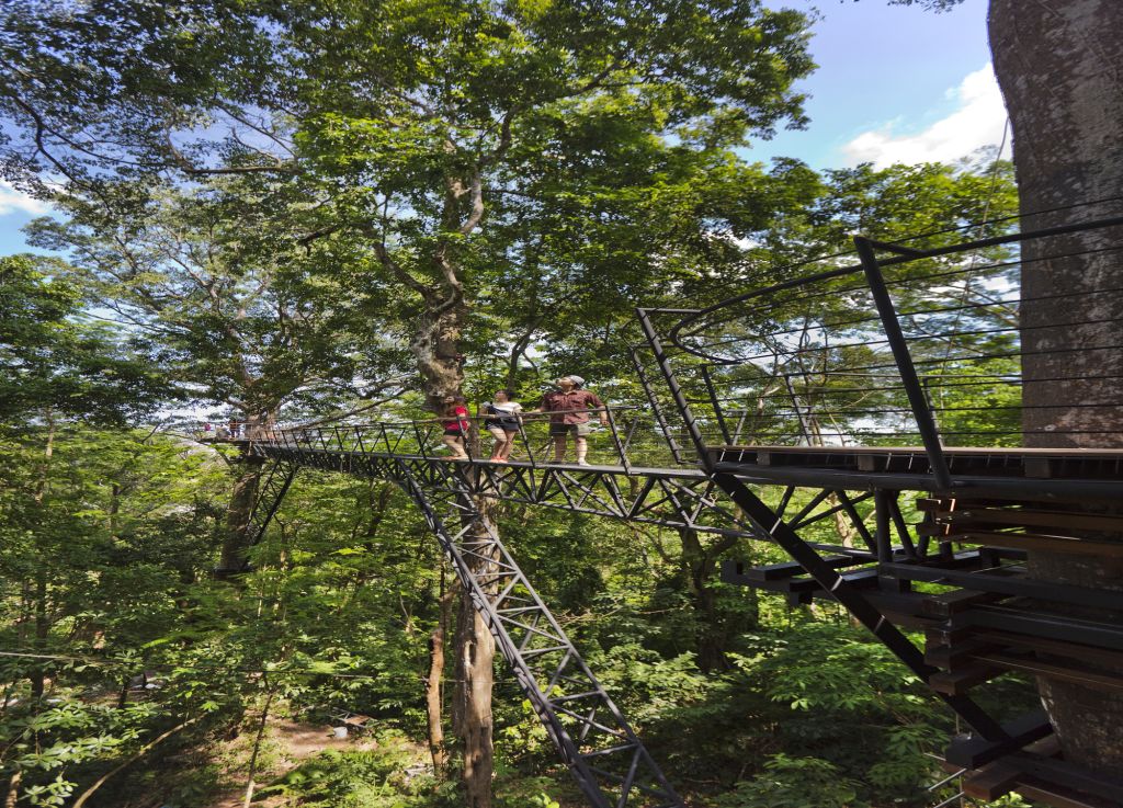 나무 꼭대기를 돌아다닐 수 있는 구름다리로, 숲을 내려다 볼 수 있습니다.