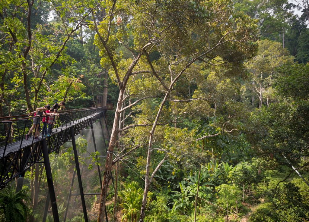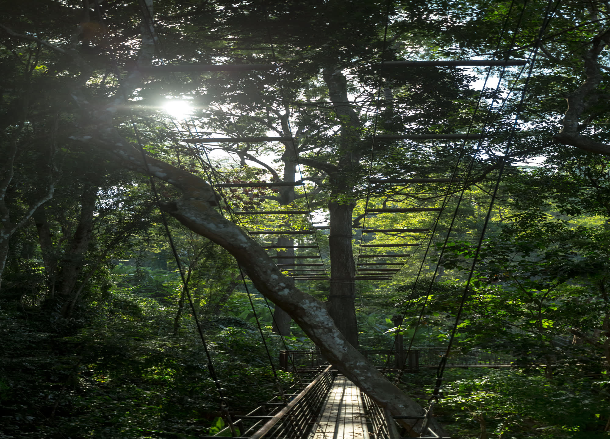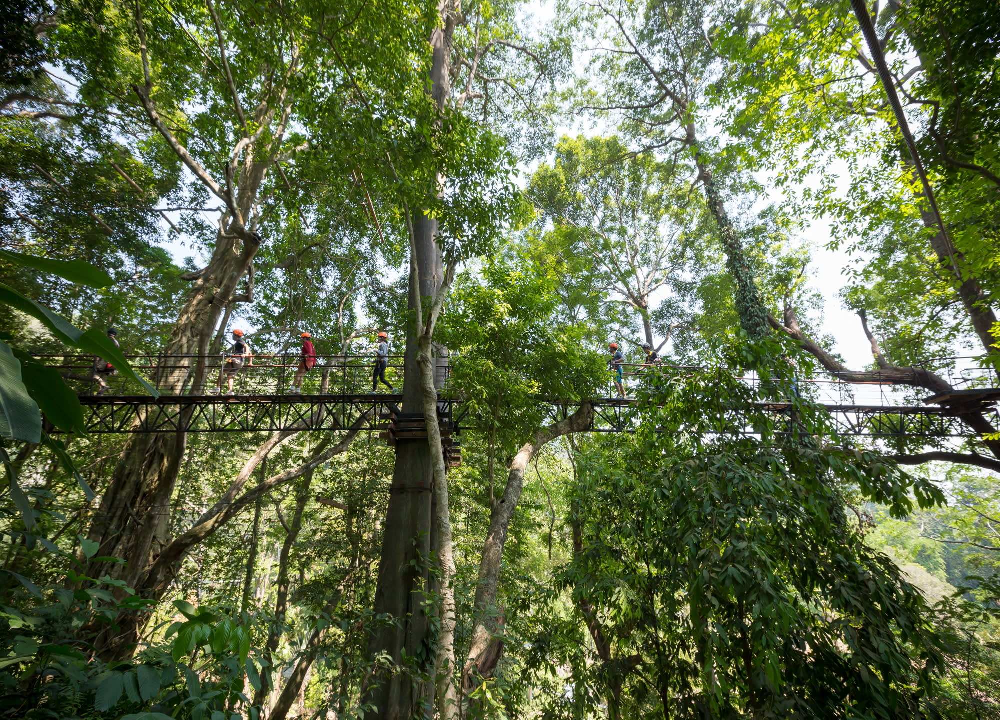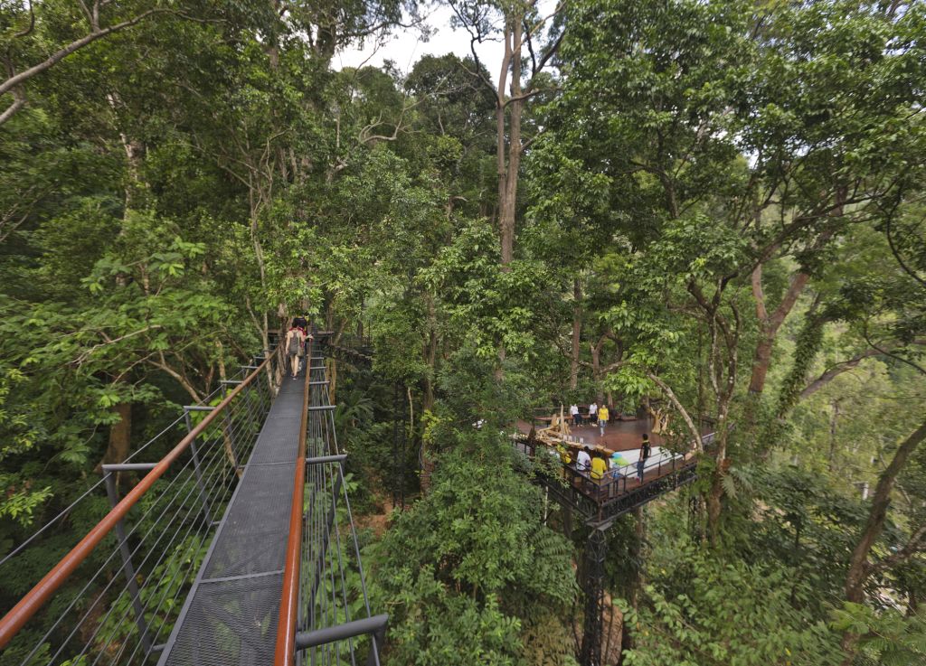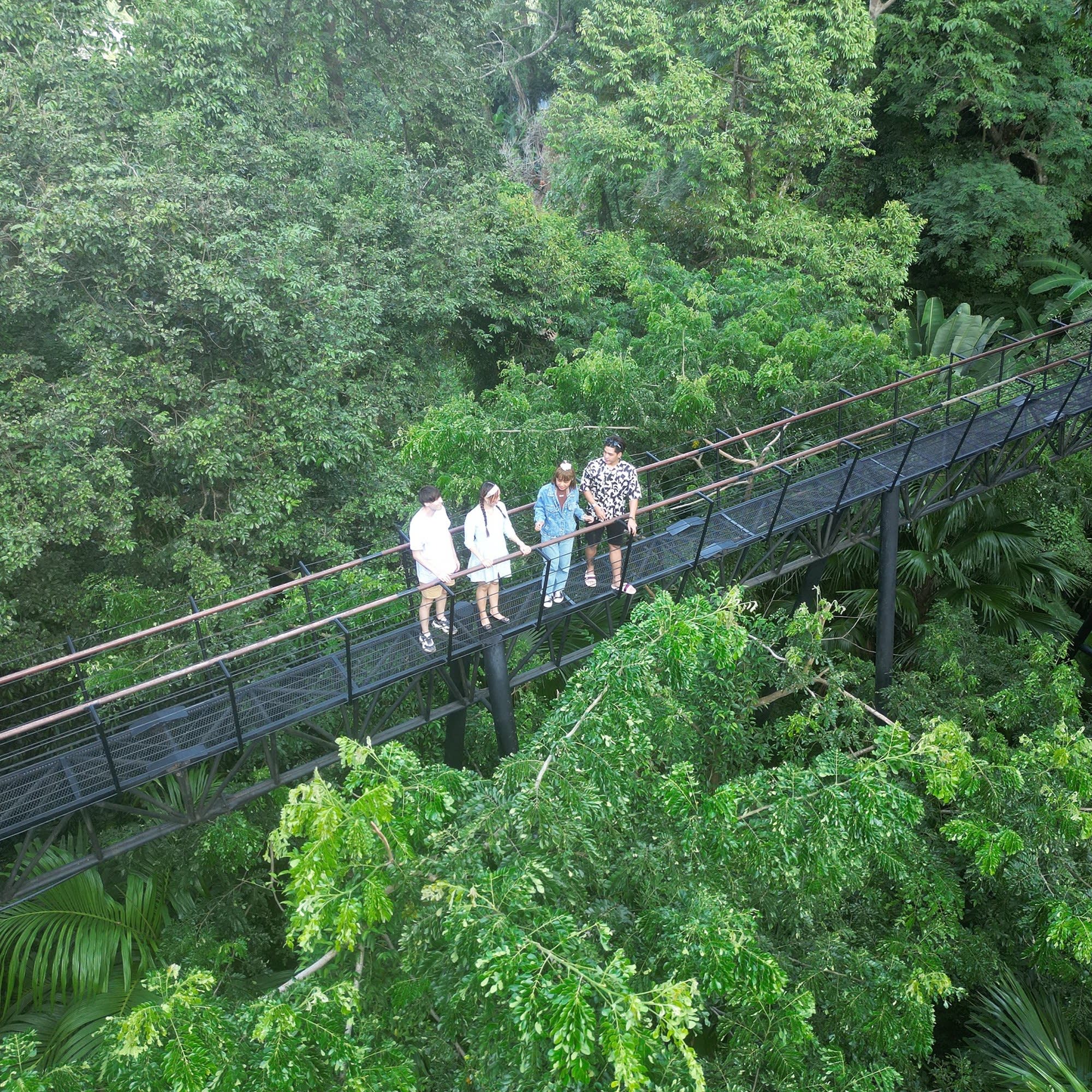 나무 꼭대기를 돌아다닐 수 있는 구름다리로, 숲을 내려다 볼 수 있습니다.