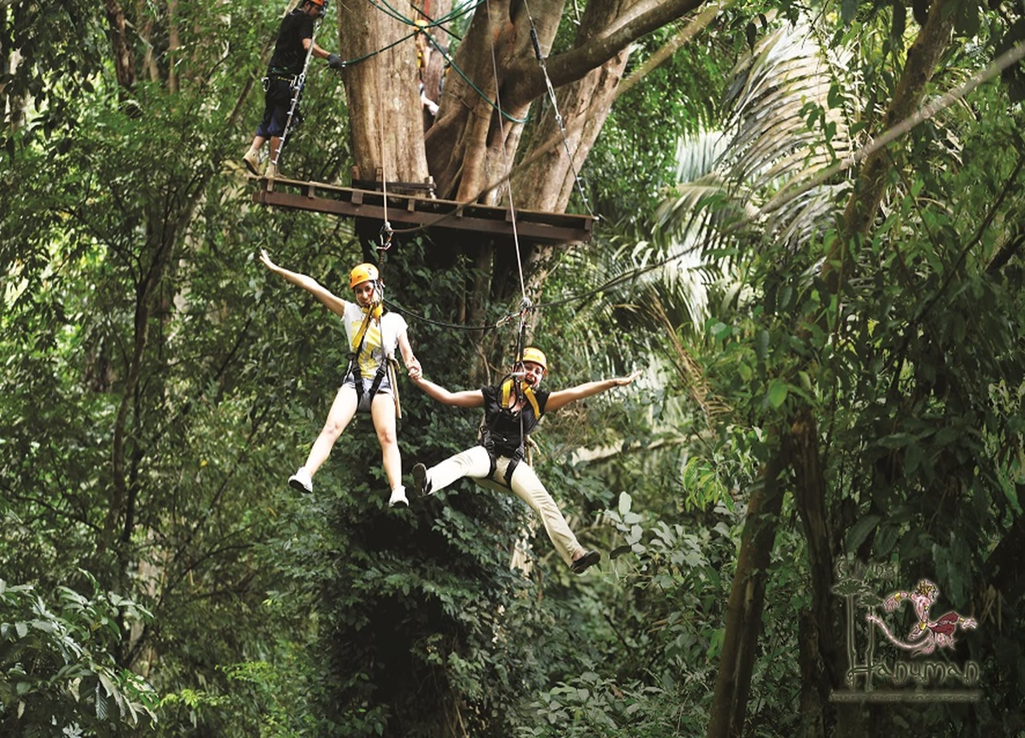 * 외국인 조인 투어로 여러나라 국적의 관광객들과 영어 가이드가 함께 빠통 근처 자연 그대로의 정글 모습을 보실 수 있는 동남아시아 최고의 정글 체험인 하누만 투어입니다. 유럽산 고품질 장비를 이용한 케이블 장치를 타고 외줄 타기, 스카이 브릿지, 하늘계단 체험 등 여러가지 스릴 있는 액티비티가 있습니다.