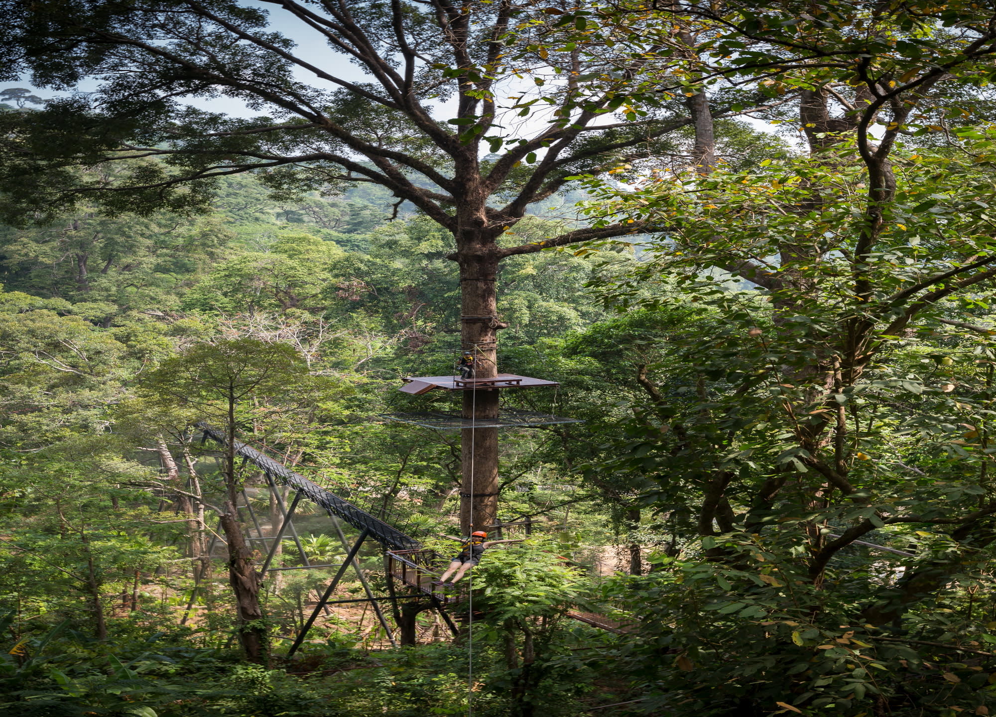 3개의 짚라인, 2개의 레펠, 1개의 나선 계단으로 구성되어 있습니다.