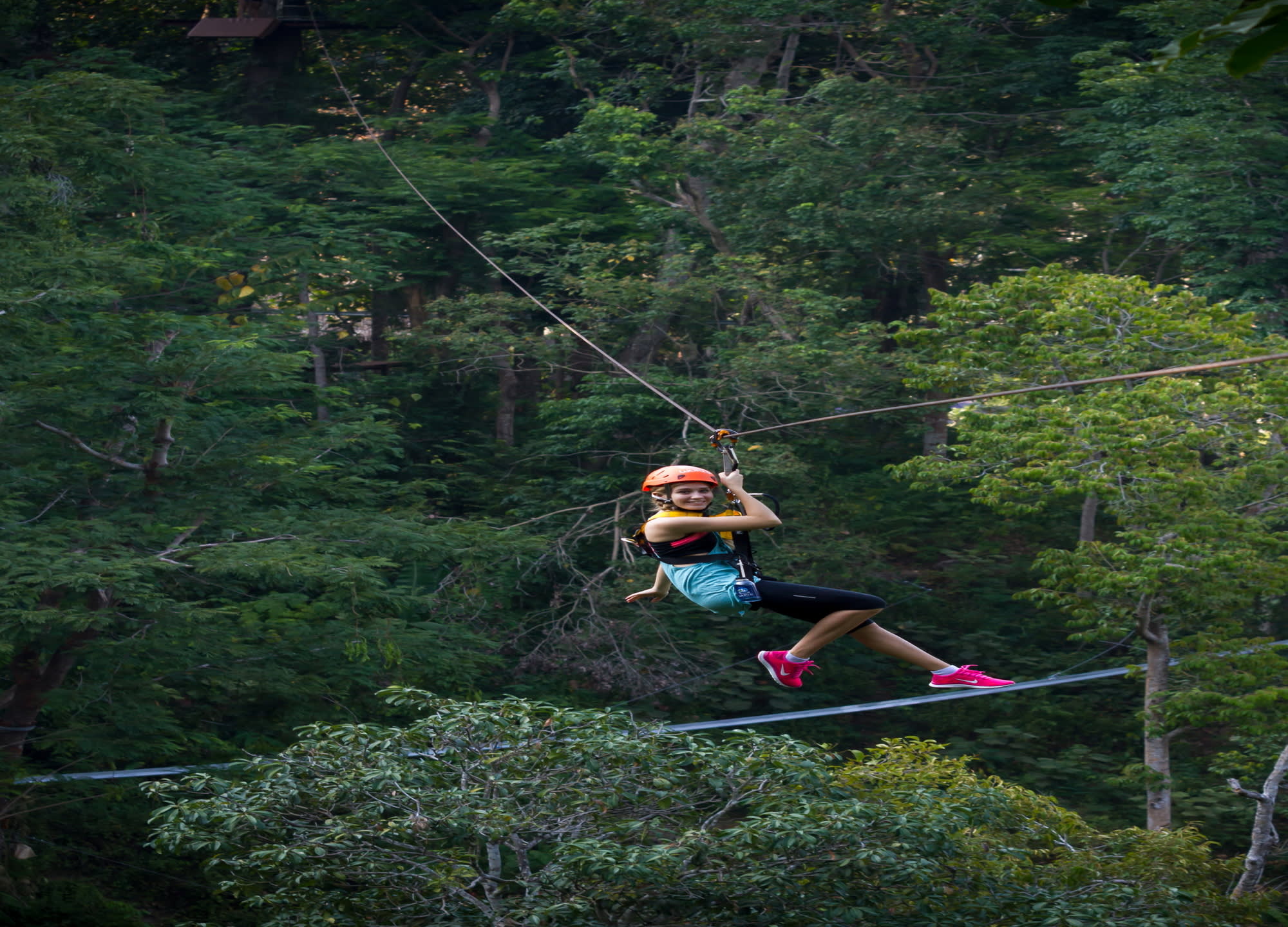 800m코스의 곡선으로 이동하는 롤러코스터형 짚라인 입니다.