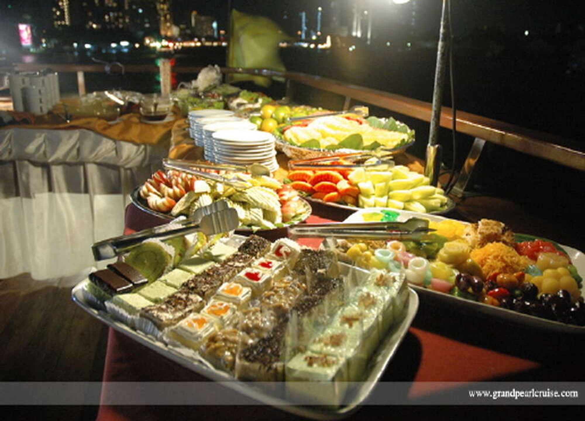 크루즈는 리버시티 선착장에서 출발하여 우아한 코스 요리를 즐기며 항해하고, 선상에서는 라이브 밴드와 태국 전통무용 공연이 어우러져 더욱 특별한 분위기를 선사합니다.
