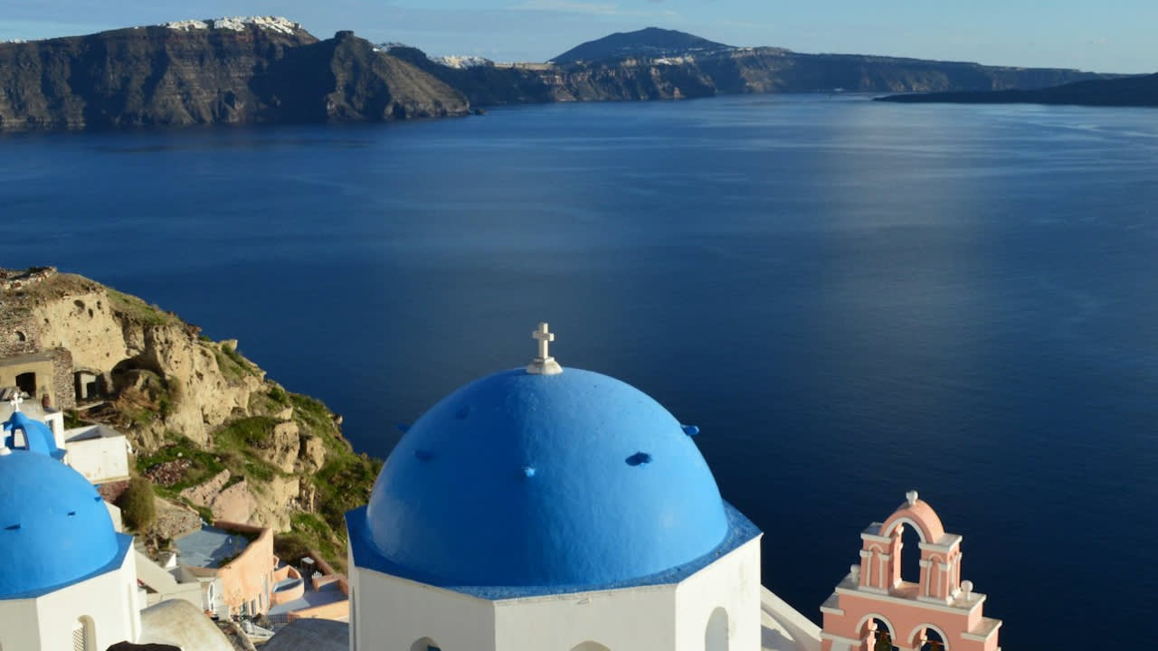 * 산토리니에서 가장 높은 봉우리에 올라 아름다운 풍경을 파노라마 뷰로 감상하세요.