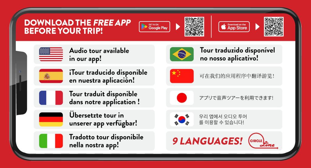 다른 서클 라인 티켓과 달리 선택한 크루즈와 시간에 대해 예약 및 탑승이 보장된 공식 파트너 티켓입니다. 2시간 30분 동안 맨해튼을 한 바퀴 도는 이 플래그십 투어를 통해 5개 자치구를 모두 둘러보고 자유의 여신상을 가까이에서 바라보며 멋진 사진을 찍을 수 있습니다. 투어에는 영어를 구사하는 가이드의 라이브 해설과 서클 라인 앱에서 제공되는 다국어 오디오 가이드가 포함되며 선내 무료 와이파이가 제공됩니다.