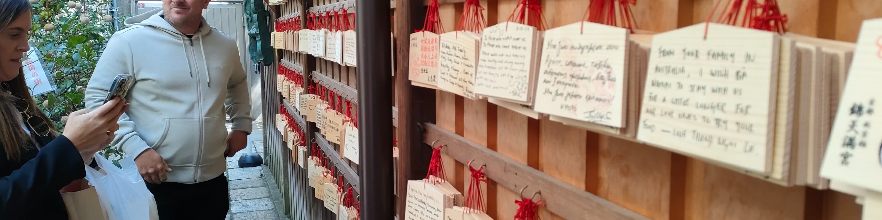 * 니시키텐만구에서는 가이드로부터 일본의 전통적인 신사 및 사찰 방문 방법에 대해 배울 수 있습니다.