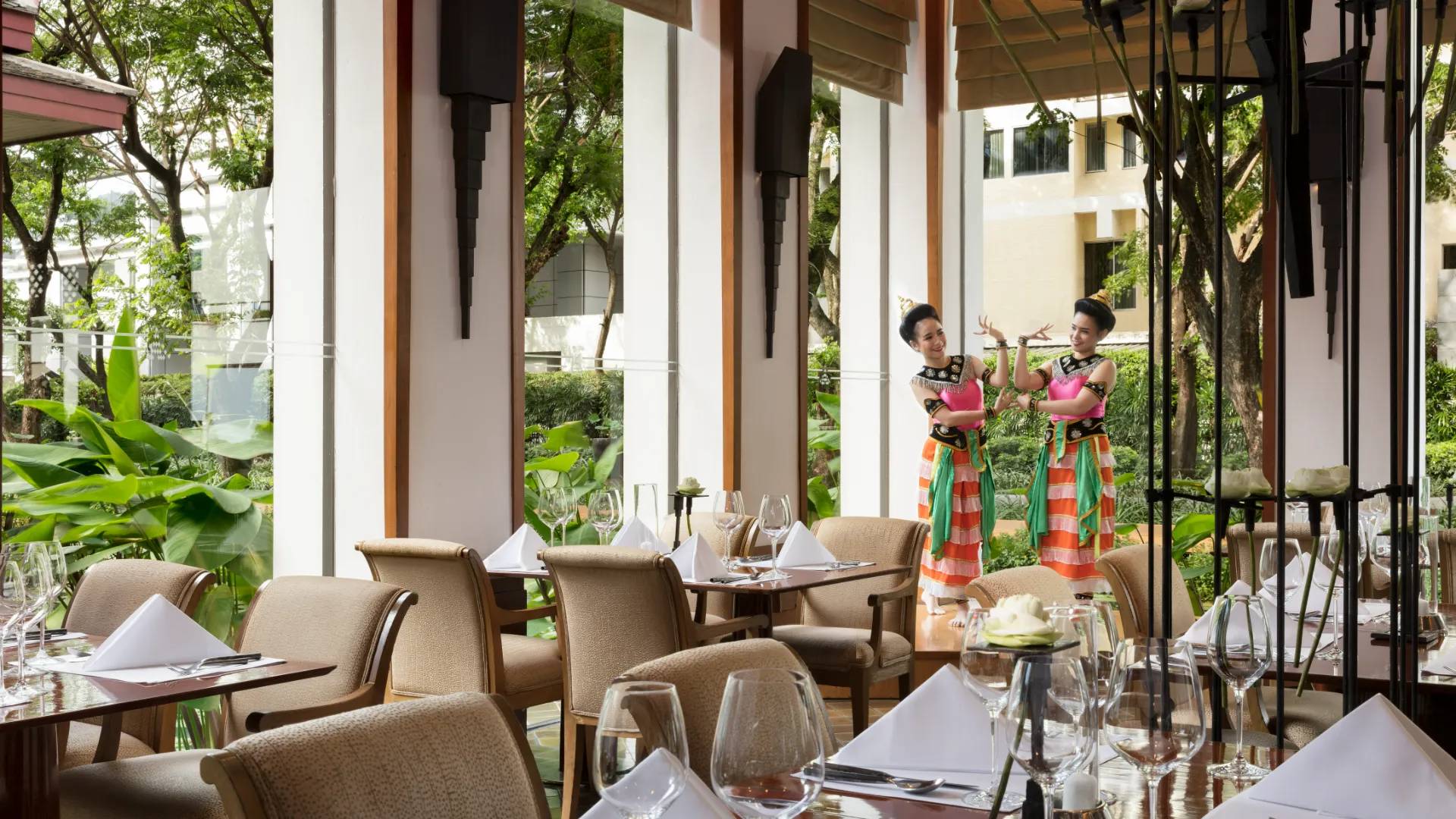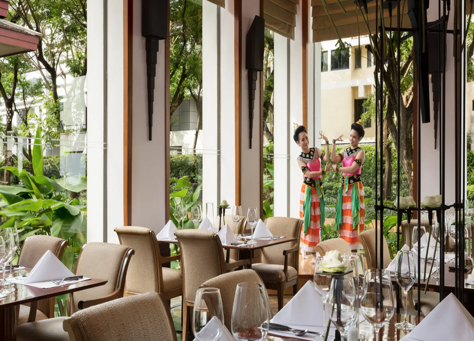 미슐랭 가이드에도 올라가 있는 수코타이 방콕 호텔의 레스토랑 중 셀라돈 레스토랑 (Celadon Restaurant)입니다. 메뉴는 태국식 전통 코스요리이며 태국 전통 춤 공연도 즐길 수 있습니다.