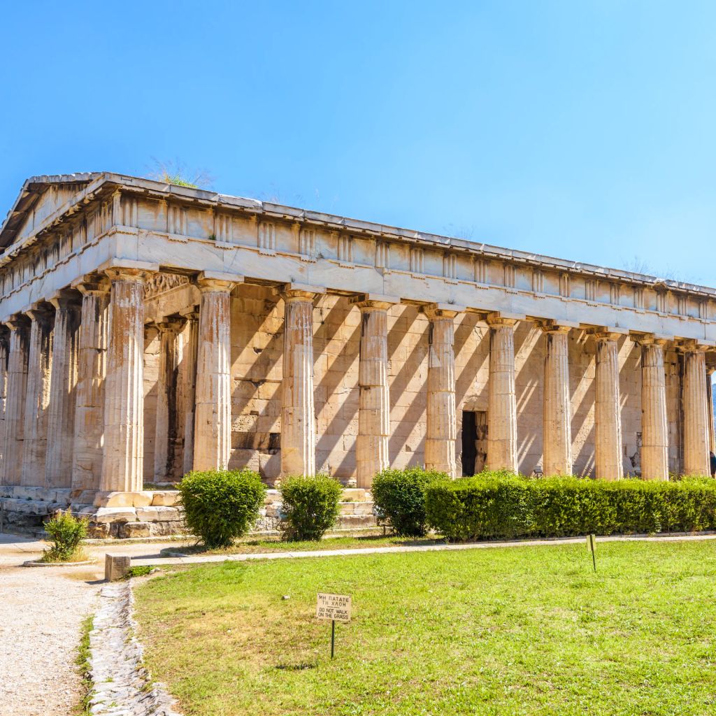 헤파이스토스 신전의 잘 보존된 도릭 양식 기둥을 감상하세요.