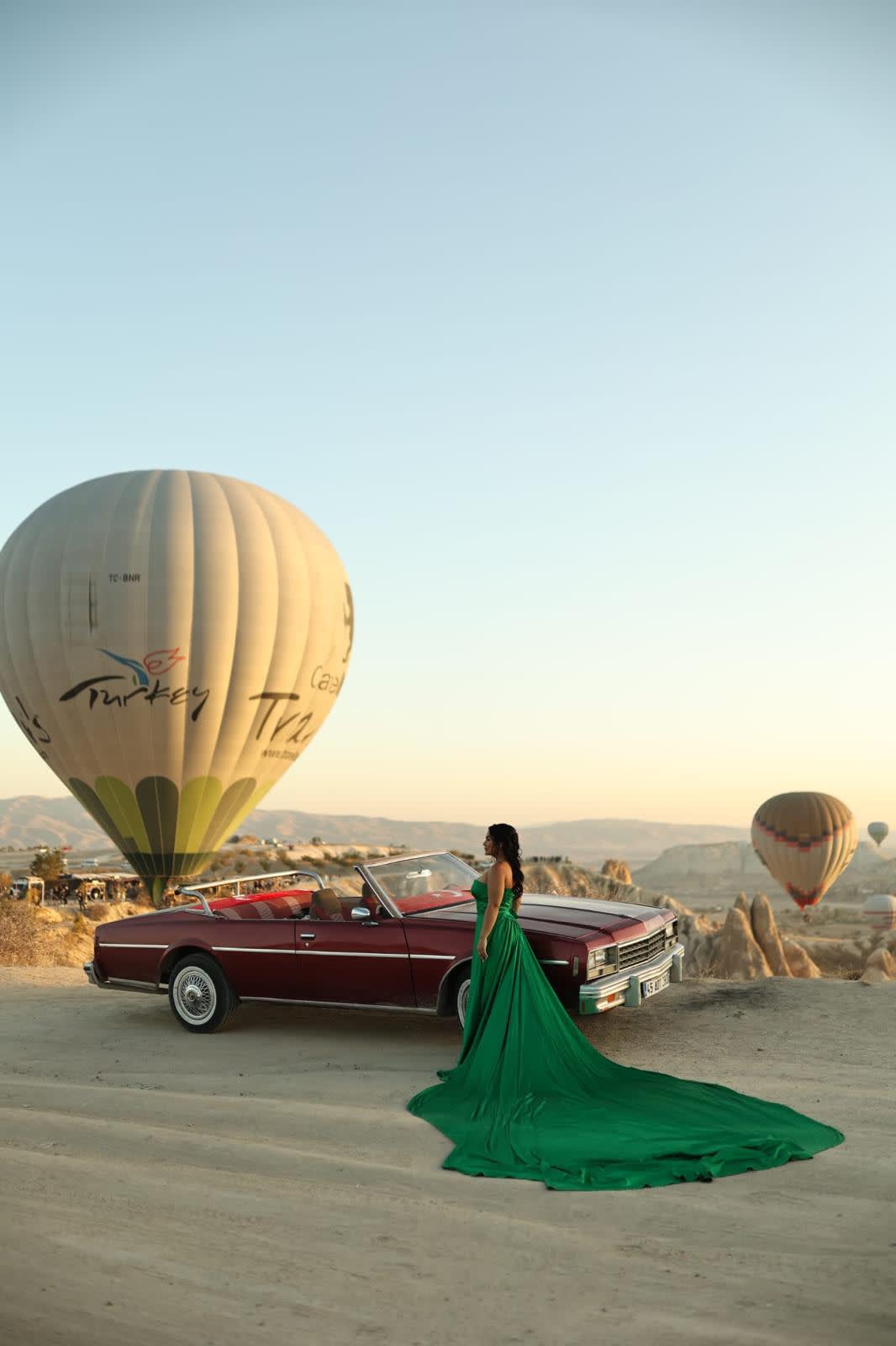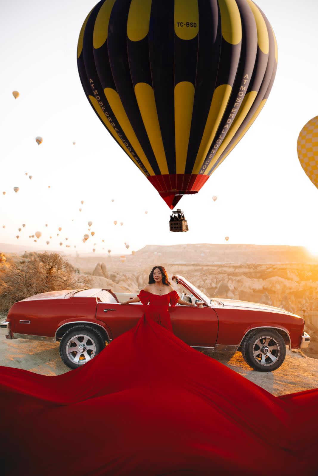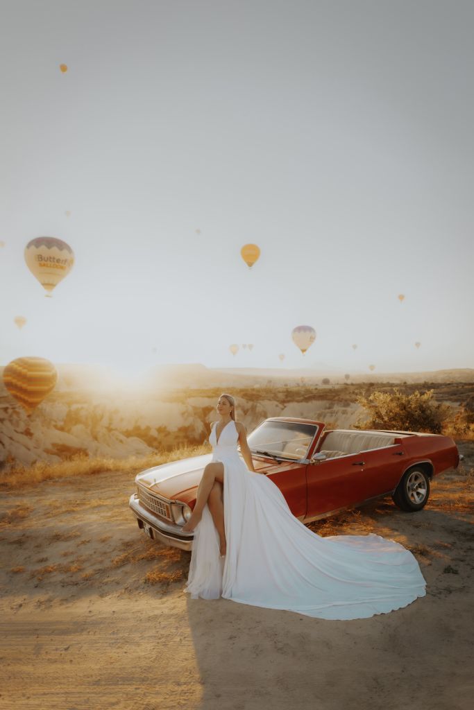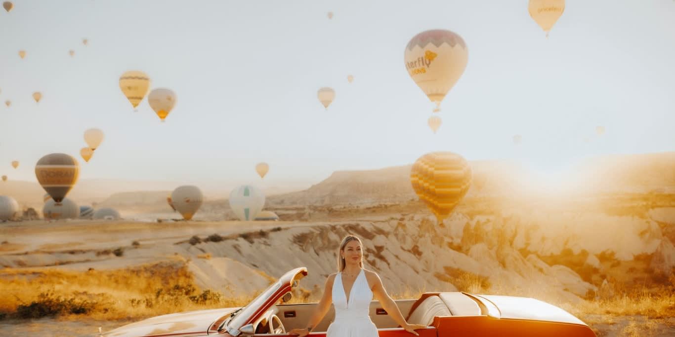 전문 사진작가와 함께 클래식 자동차와 포즈를 취하거나 멋진 "플라잉 드레스"를 입고 인스타그램에 올릴 만한 사진을 찍을 수 있습니다. 프라이빗 이동 서비스와 클래식 자동차 서비스를 이용하여 편안하게 괴레메 최고의 전망대에서 숨 막힐 듯 아름다운 일출을 배경으로 멋진 사진을 남겨보세요.