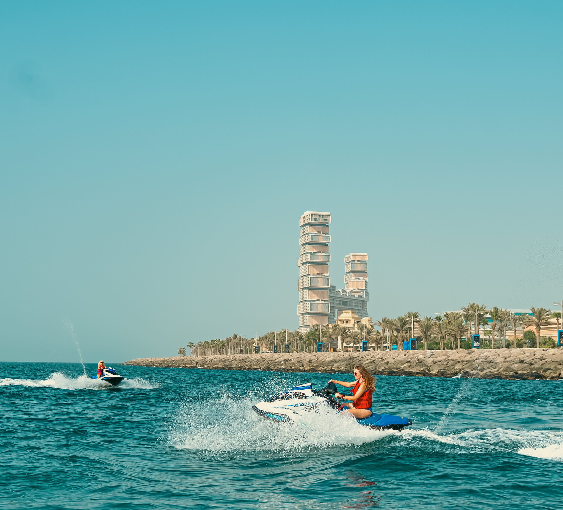 * 각 제트스키에는 최대 2명까지 탑승할 수 있으므로 파트너와 함께 모험을 공유할 수 있습니다.