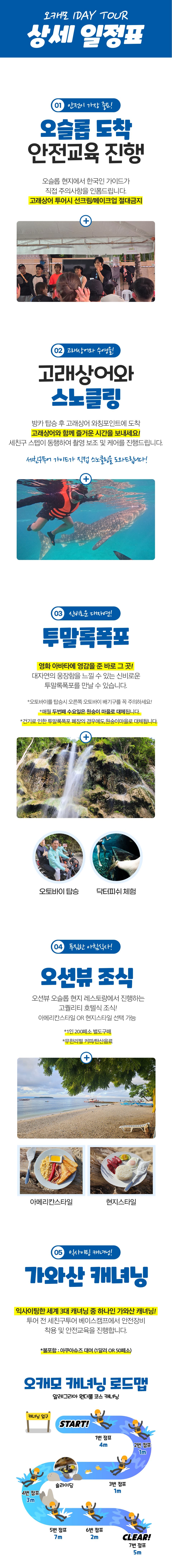 ■엑티비티 상품 안전 상 유의사항 ■ - 만 6세 이상 이용 가능합니다. - 임신중이신 분들의 경우 그 어떤 경우에도 예약이 불가능합니다. - 허리 디스크 및 척추관련 질환이 있으신 분은 투어 진행이 어렵습니다. - 수상 액티비티 포함으로 전신 질환, 육체적, 정신적 컨디션이 좋지 않은 분은 이용에 주의해주시기 바라며 예약 시 문의해주셔야 합니다. ■ 투어 차량 ■ 투어 당일 조인 인원 수에 맞게 배정 ⓐ 2인 : 도요타 이노바 ⓑ 3~6인 : 도요타 그란디아 ⓒ 7인 이상 : 도요타 투어러, 닛산프리미엄 ⓓ 9인 이상 : 현대 솔라티 (조인전용차량) ■ 준비사항 ■ ① 오슬롭 고래상어 복장 : 픽업 시 래쉬가드 및 수영복, 젖어도 되는 복장 착용. 선크림 등 모든 화학물질 사용 금지. ② 조식 200페소/1인분 별도 [ 아메리칸식 or 현지식 선택가능] ③ 아동은 어린이 스노쿨링 세트 준비 필요