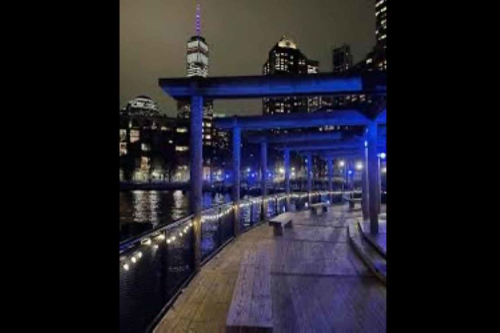 투어의 마지막은 호보켄의 허드슨 강을 건너면 크리스마스 조명으로 빛나는 맨해튼의 스카이라인이 파노라마처럼 펼쳐져 잊을 수 없는 사진을 남길 수 있는 완벽한 홀리데이 장면을 연출할 수 있습니다.