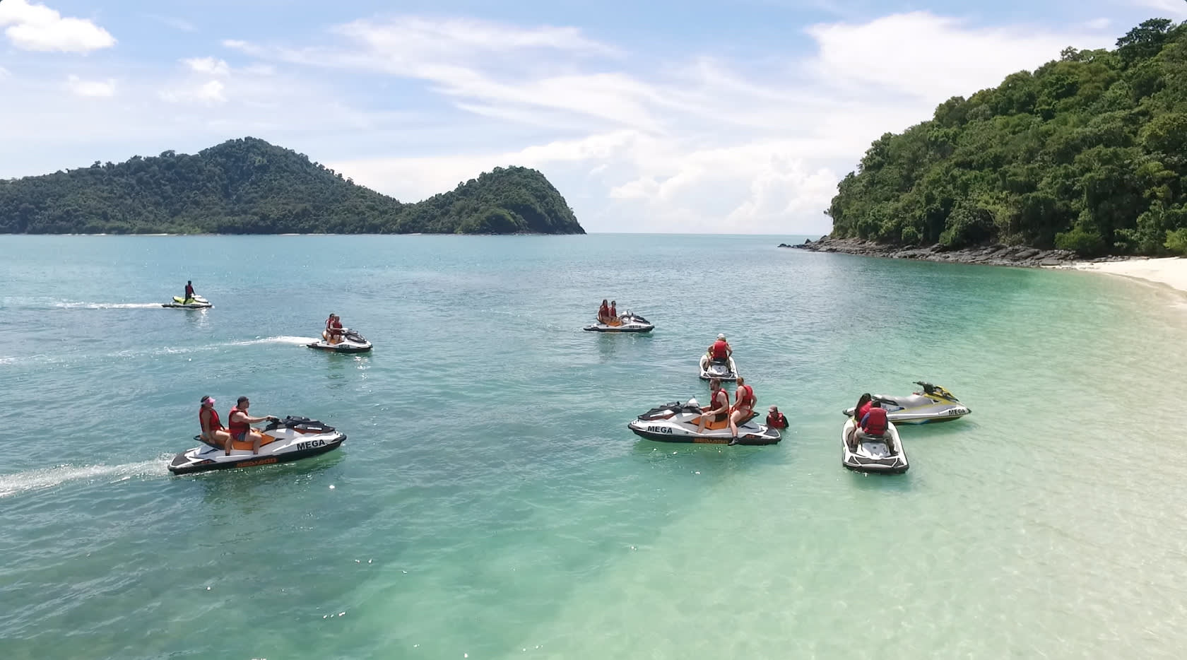 * 구명조끼를 입고 제트 스키를 타고 랑카위 군도에서 가장 큰 섬인 다낭 분팅 섬(‘임산부의 섬’이라는 뜻)을 포함하여 8개의 아름다운 섬을 둘러보세요.