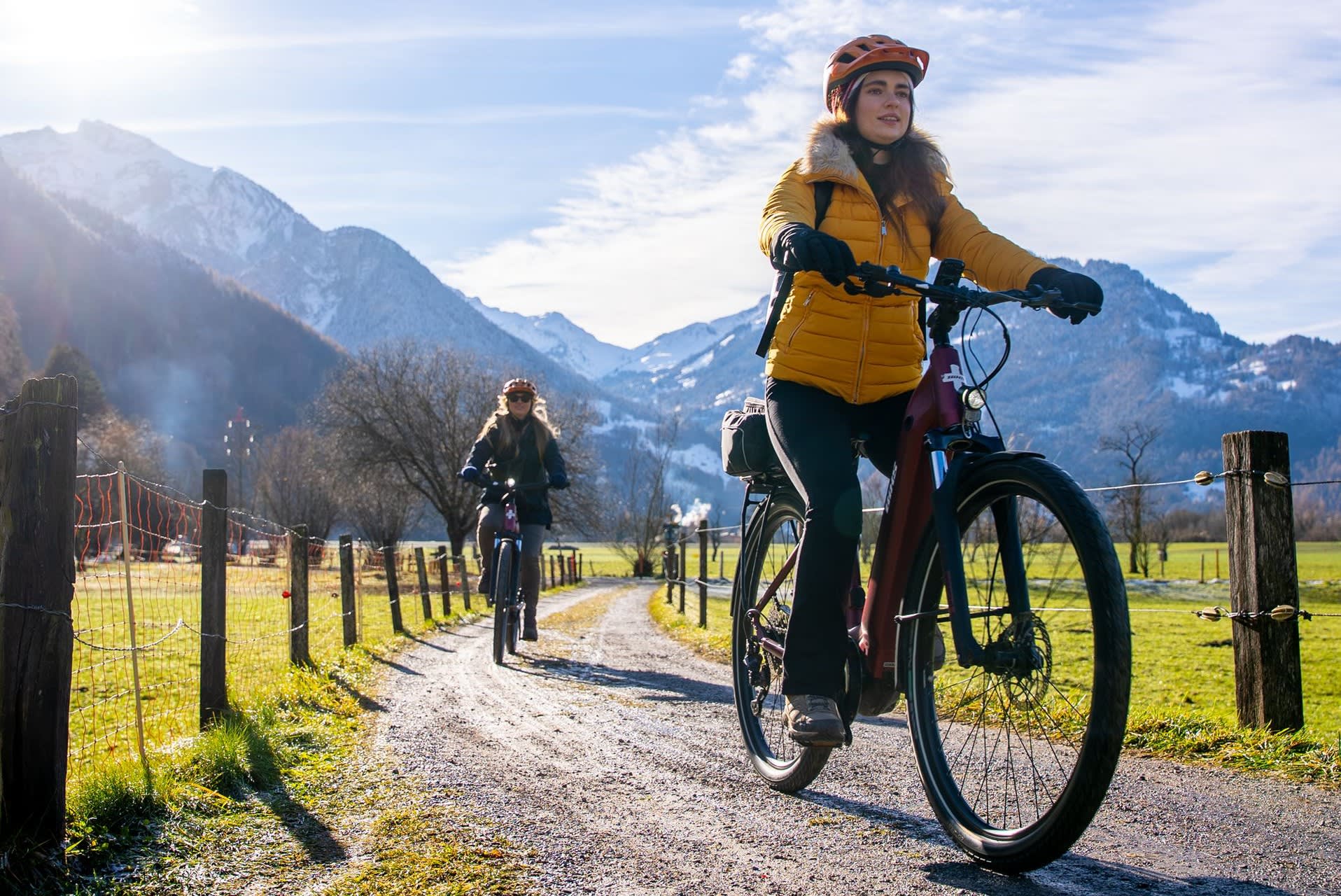 차분한 겨울 풍경 속에서 느긋하게 즐기는 E-바이크 라이딩