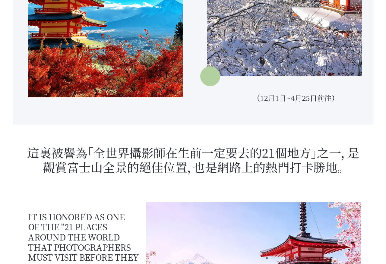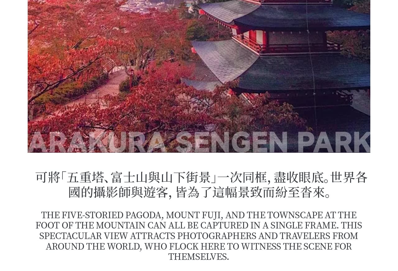 * 후지산 클래식 코스: 후지산 5합목 또는 인기 사진 명소인 아라쿠라야마 센겐 공원을 방문하여 사각지대 없는 후지산의 아름다운 경치를 감상하세요.