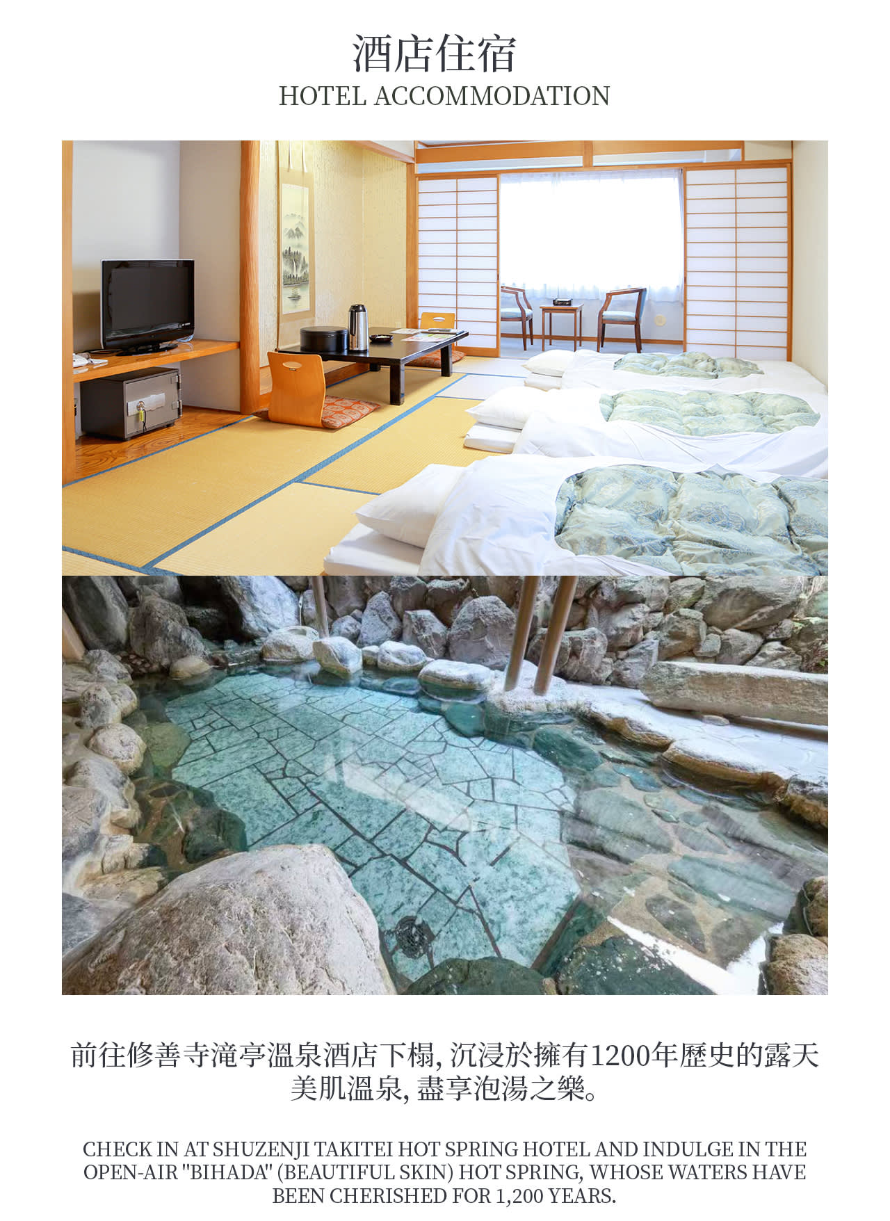 * 100년 된 온천 숙소에 머물기: 이즈 온천 여관에 머물면서 전통 요리와 노천 온천을 즐기며 일본 온천 문화의 고요함을 느껴보세요.