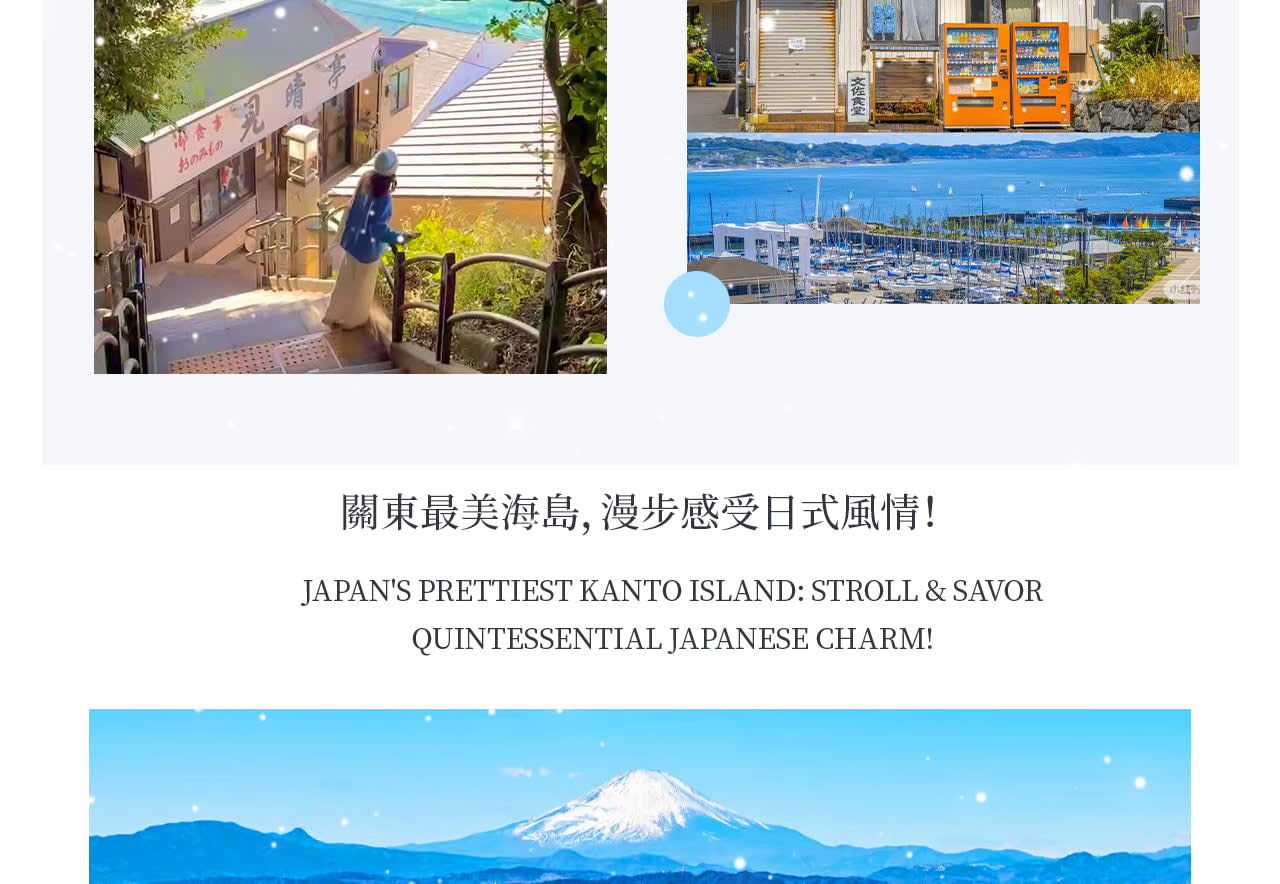 둘째 날, 미슐랭 2스타 관광지인 슈젠지 온천 거리에서 산책하며 고풍스러운 온천 문화를 느껴보세요. 오무로산에 올라 케이블카를 타고 이즈 산맥과 사가미 만을 굽어보며 화산 분화구의 웅장한 경치를 느껴보세요. 그 후 에노시마와 쇼난 해안으로 이동하여 자유롭게 활동하고, 향수를 불러일으키는 에노덴을 타고 해안 철도의 풍경을 체험해보세요. 마지막으로 가마쿠라 고교 앞의 클래식한 바다 풍경 철도에서 사진을 찍고, 저녁에 도쿄로 돌아와 2일간의 완벽한 여정에 마침표를 찍으세요.