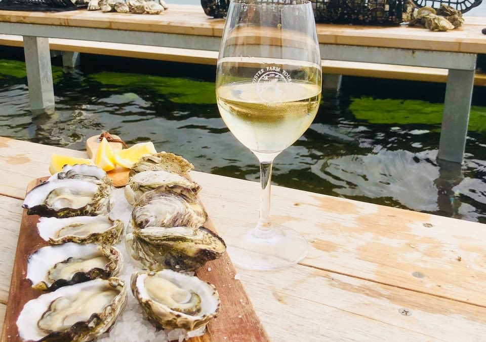 * The Salt Water Pavilion 농장 투어 데크에서 바다로 나가 갓 껍질을 벗긴 굴 맛보기