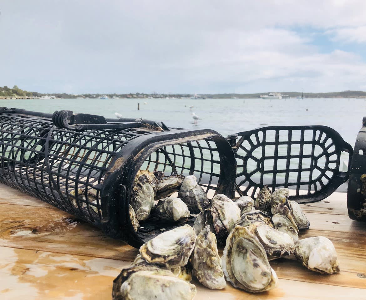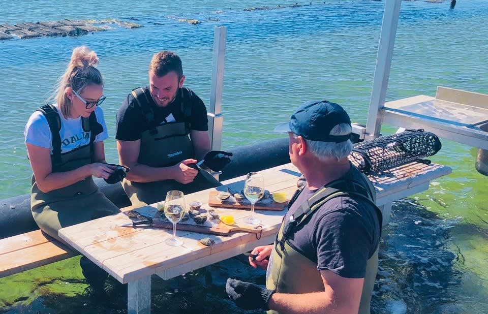 * 굴 재배법을 확인하고 전문 굴 양식업자인 Ben Catterall에게 배우며 토종 Angasi 및 Coffin Bay Pacific 굴 맛보기