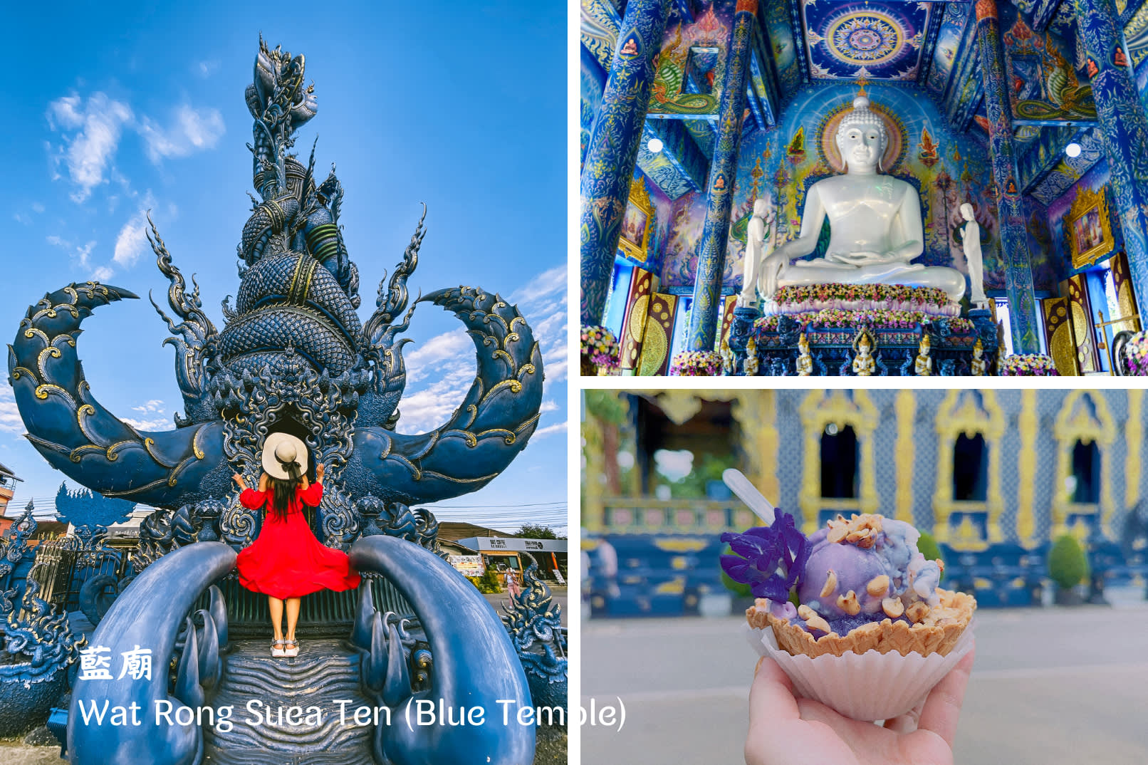 치앙마이에서 출발해 치앙라이로 떠나는 편안한 당일 여행! 태국 미학과 예술로 세계적인 명성을 얻은 "화이트 템플"과 전통적인 태국 사원 양식과는 다른 "블루 템플"을 방문합니다. 더위를 식혀줄 버터플라이 피 꽃 보라색 아이스크림도 맛보세요 (개인경비). 치앙라이 온천에서는 발을 담그며 휴식을 취할 수 있습니다. 마지막으로, 동화 속 세상처럼 몽환적인 치앙라이의 가장 아름다운 카페에서 특별한 사진을 찍으며 잊지 못할 추억을 만들어보세요.