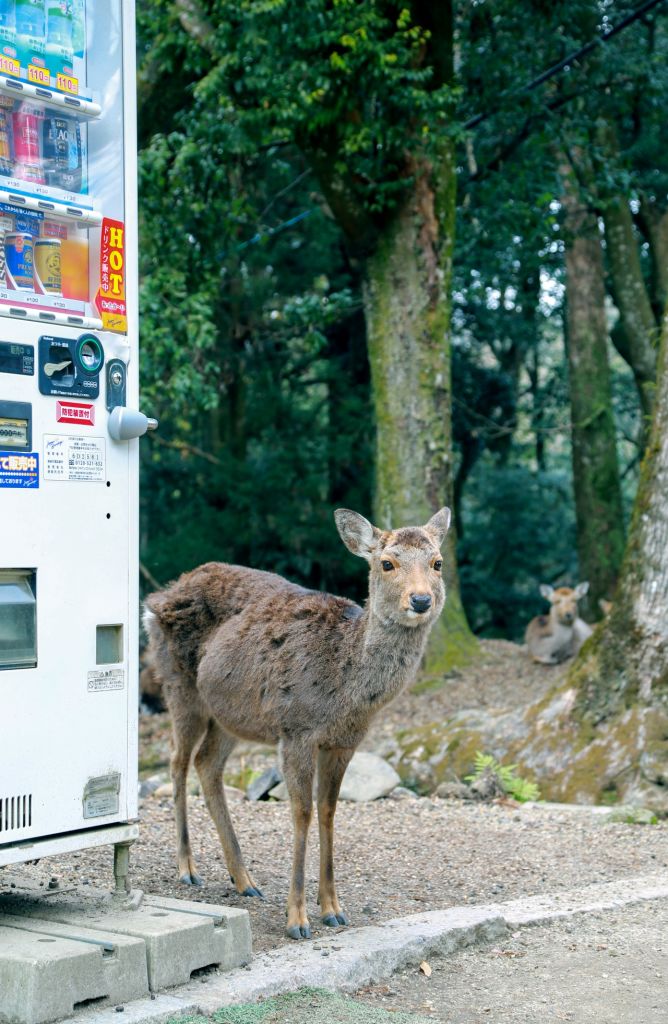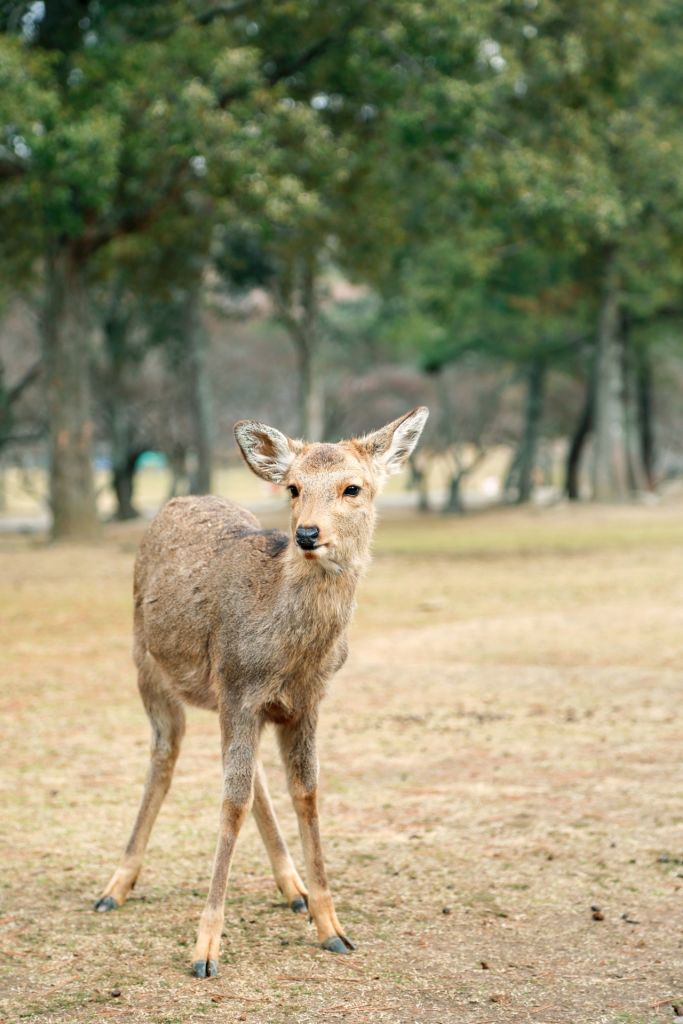 나라 공원의 고요한 주변을 탐험하며 자유롭게 돌아다니는 사슴을 둘러보세요.