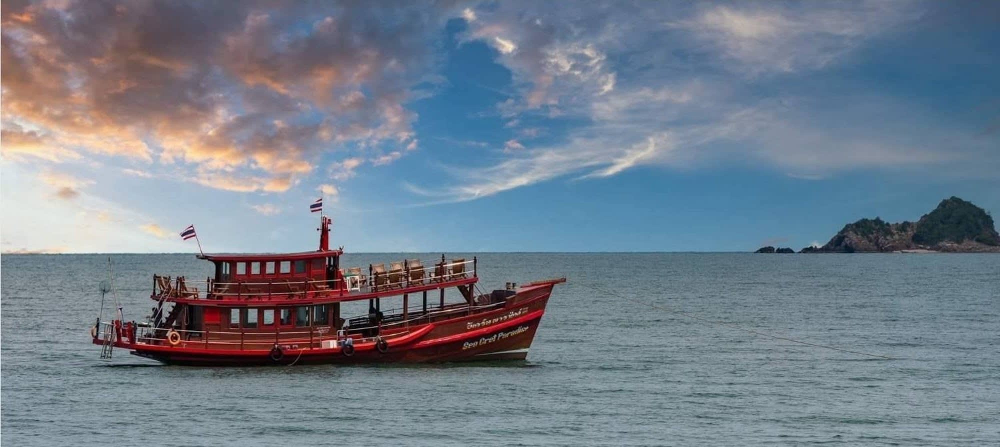 푸른 바다 위에서 바람을 맞으며 달리는 씨암 씨-크릿 크루즈는 후아힌의 감성을 한껏 느낄 수 있는 특별한 경험이에요. 낮에는 맑은 바다에서 스노클링과 선탠,낚시 등을 즐기고, 저녁에는 하늘을 붉게 물들이는 낭만적인 선셋과 함께 여유로운 시간을 보내보세요. 🌅 친구, 연인, 가족과 함께 웃음 가득한 추억을 만들어보세요!!