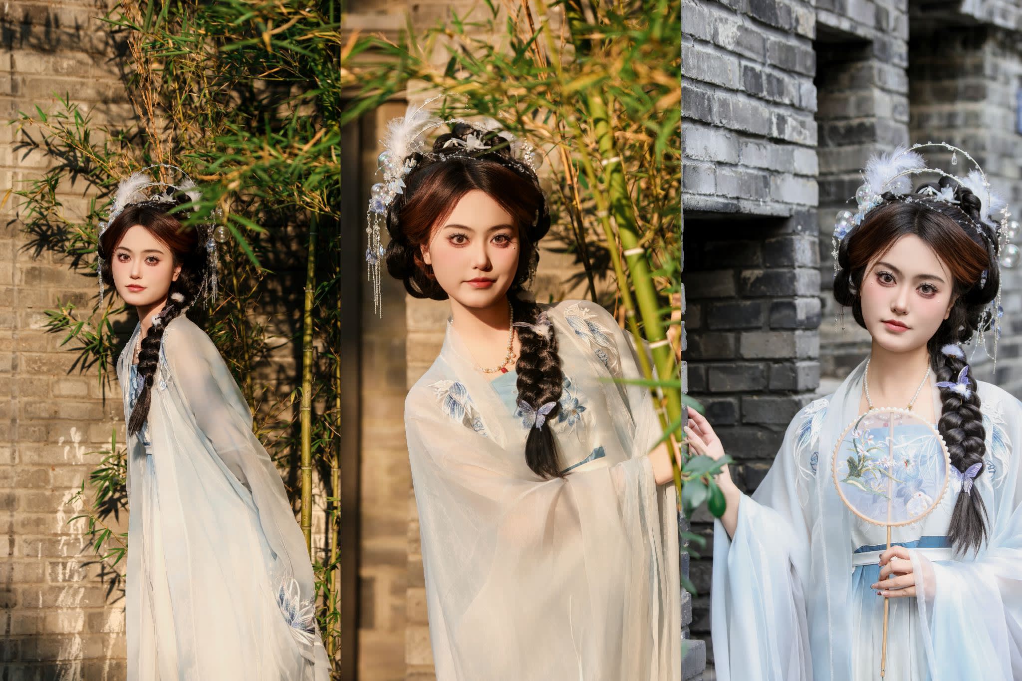 * 하늘거리는 듯한 치흉루치마부터 단정하고 품위 있는 명나라 시대 한푸까지, 모든 한푸의 원단은 가볍고 매끄러워 걸을 때마다 옷자락이 펄럭이며 관착샹즈의 청기와 지붕과 고금의 대화를 나눕니다.