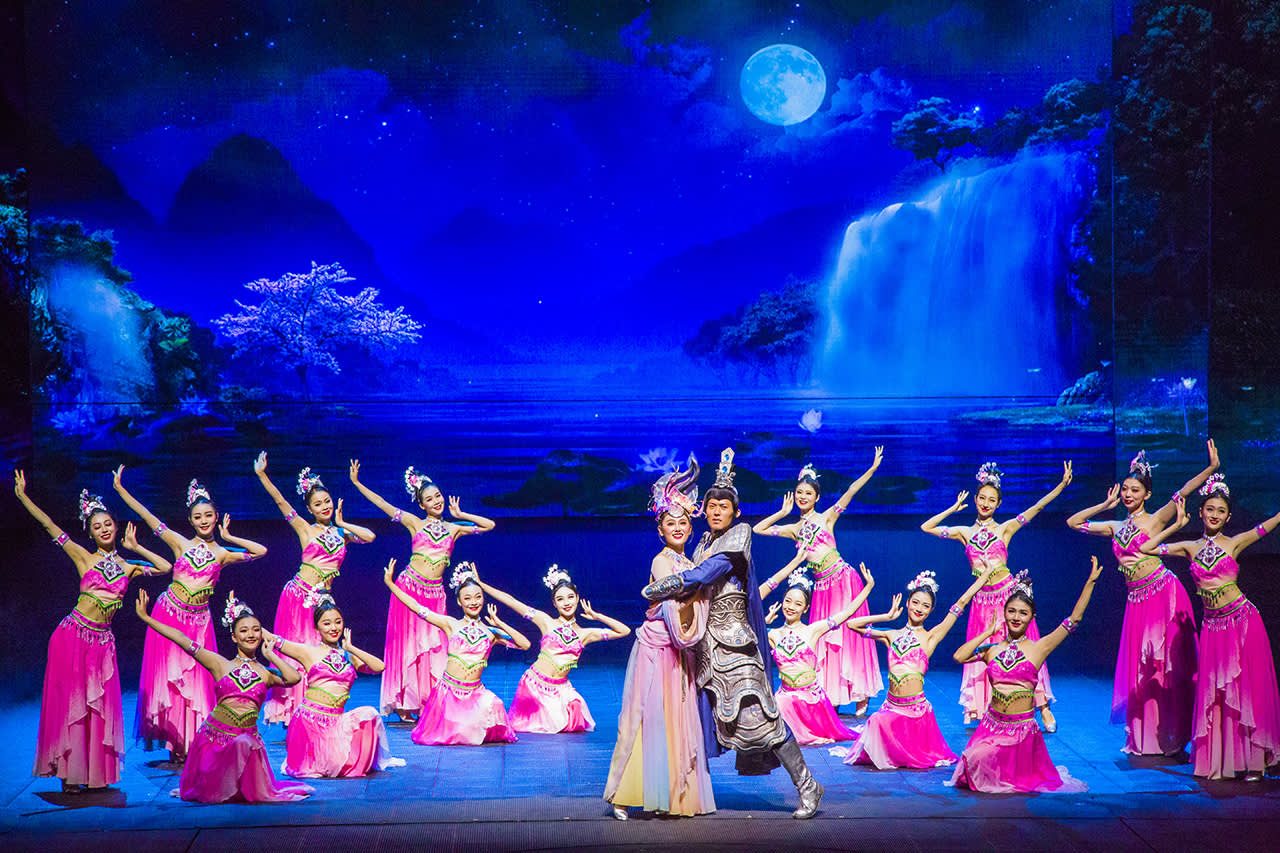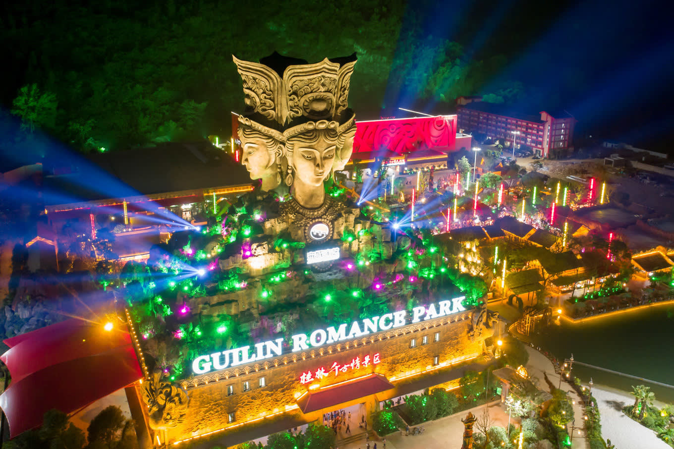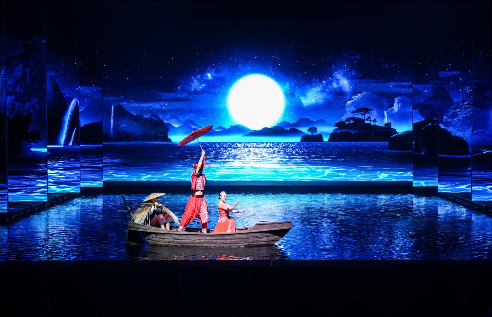 공연 내용 소개 《계림천고정(桂林千古情)》: 핵심 공연으로, 전 극은 《원고의 부름(远古的呼唤)》, 《대지의 노래(大地飞歌)》, 《미펀 이야기(米粉传情)》, 《정강왕부(靖江王府)》, 《유삼저(刘三姐)》 등 여러 장면으로 나뉩니다. 선진적인 음향, 조명, 전기 등 첨단 기술과 무대 장치를 활용하여 수륙공 삼차원 입체 공간에서 공연을 펼쳐 계림의 역사와 문화를 재현합니다.
